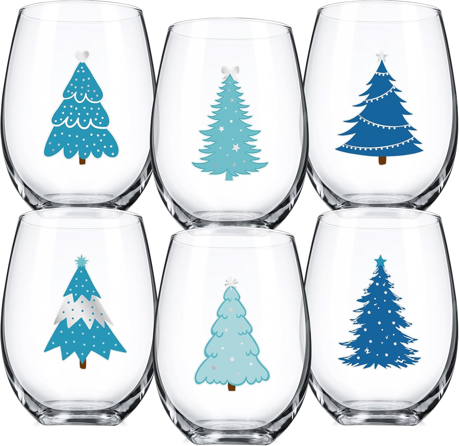 - Package Includes: this attractive set includes 6 pieces of 12 oz blue sliver winter wine glasses, making it a good addition to your glassware collection; Also, gifting is made easy with this Christmas tree glasses drinkware set