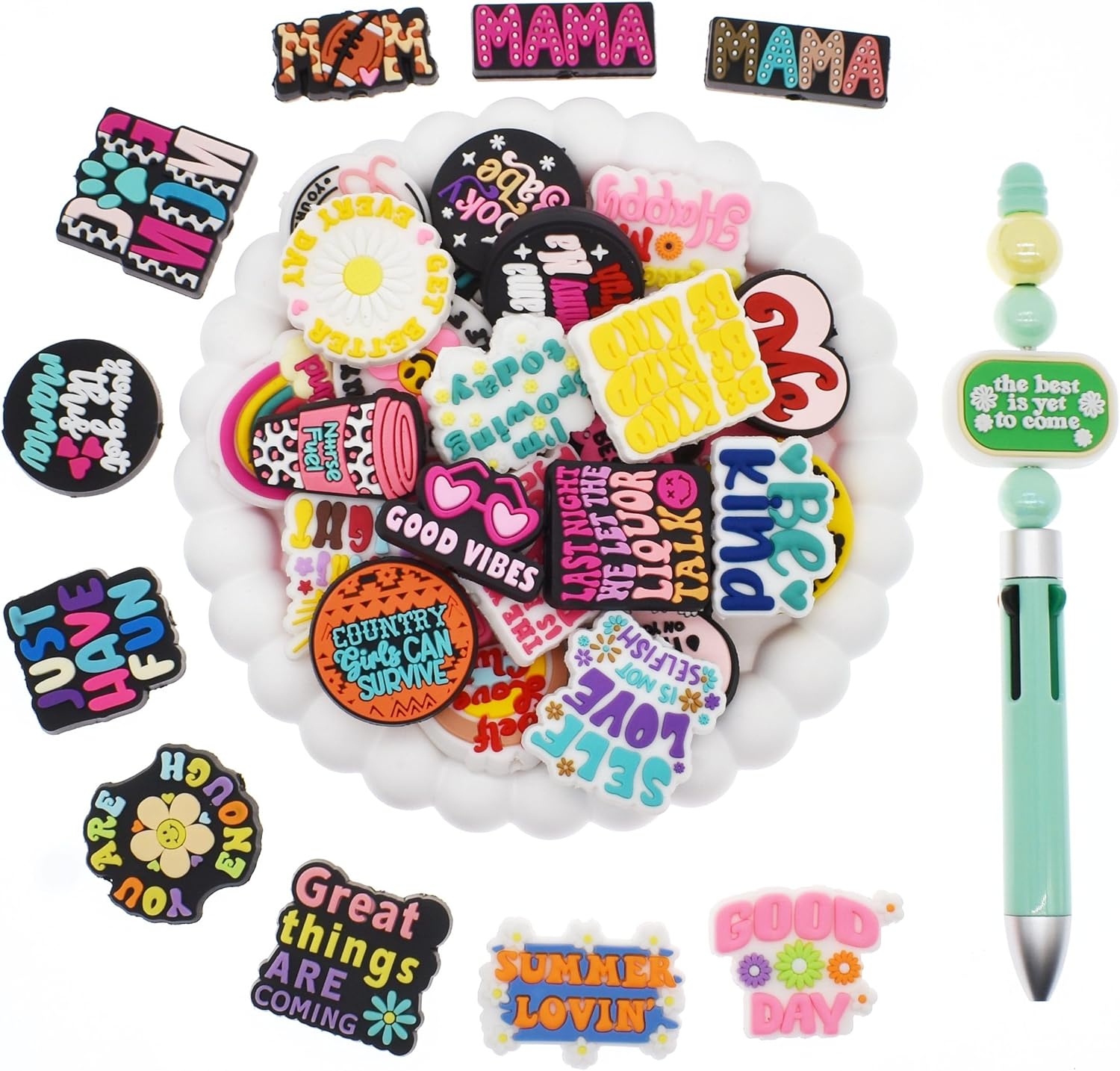 Phrase Silicone Focal Beads for Pens 50 PCS Mama MOM Blessed Focal Beads Bulk Keychains Making DIY Gifts for Teens Women
