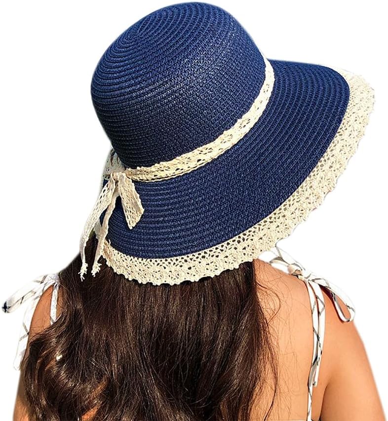 Breathable Summer Straw Hat Foldable UV Protection Bowknot Wide Brim Floppy Beach Sun Visor Hats for Women