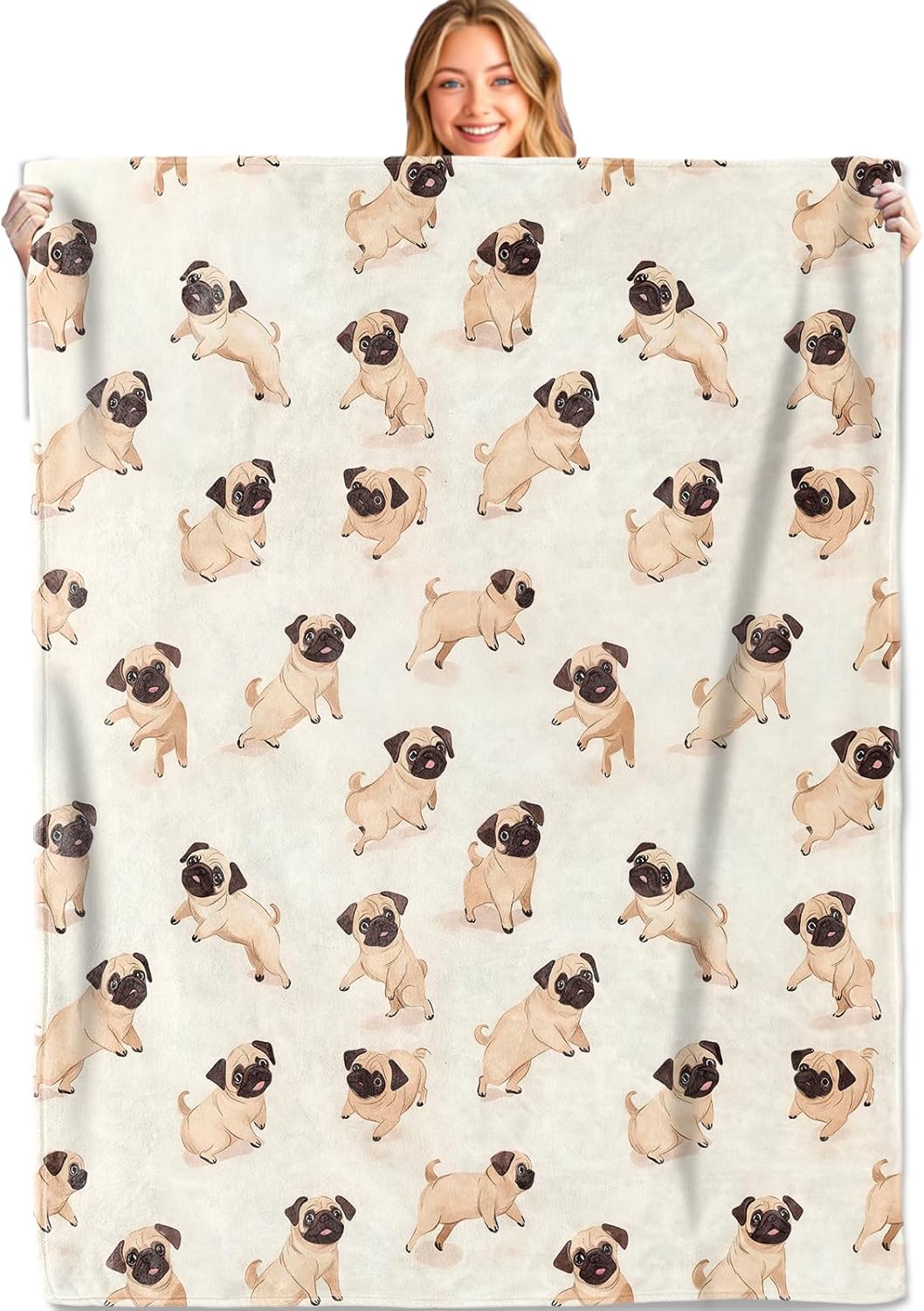 Playful Pug Throw Blanket,50x60in,Soft,Lightweight Flannel,Adorable Puppy Blankets - Gifts for Kids Boys Girls & Dog Lovers,for Couch Office Travel,Home Living Room Decor