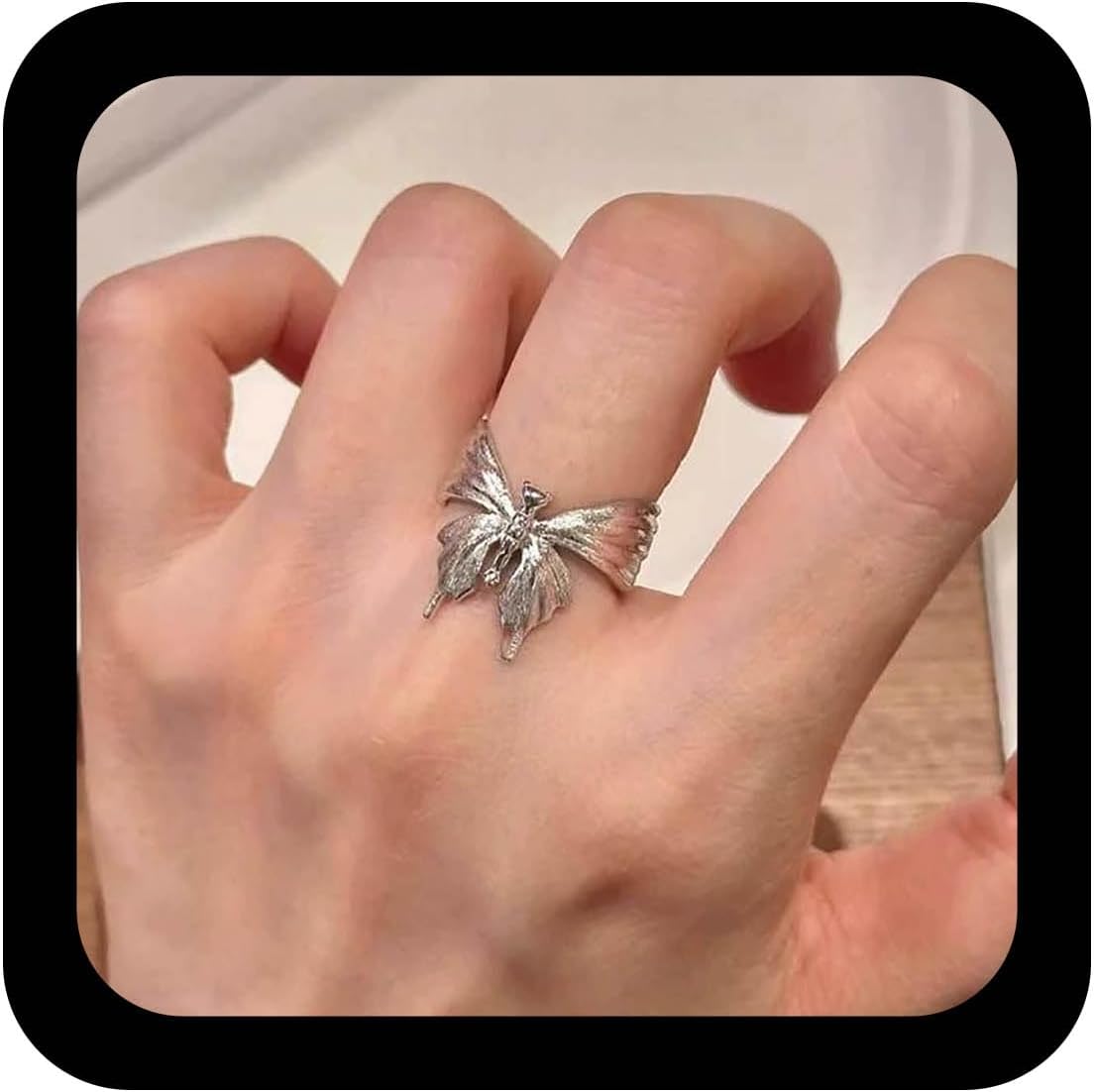 Silver Butterfly Finger Ring Vintage Butterfly Open Knuckle Ring Butterflies Dairy Wear Rings Adjustable Animal Stackable Joint Rings Charm Jewelry for Women