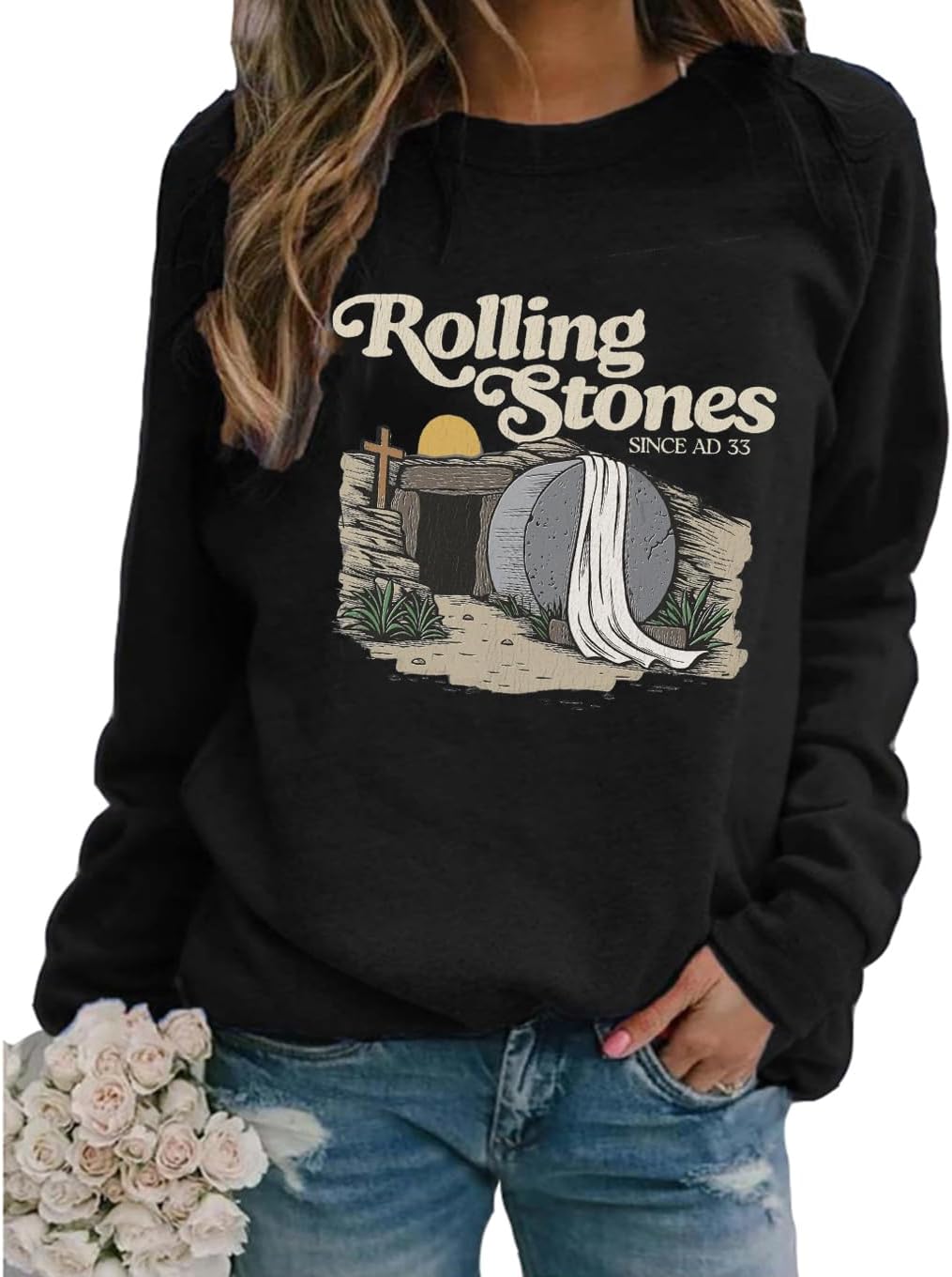 Ykomow Happy Easter Sweatshirt Women Long Sleeve Cute Bunny Rabbit Graphic Tees Pullover