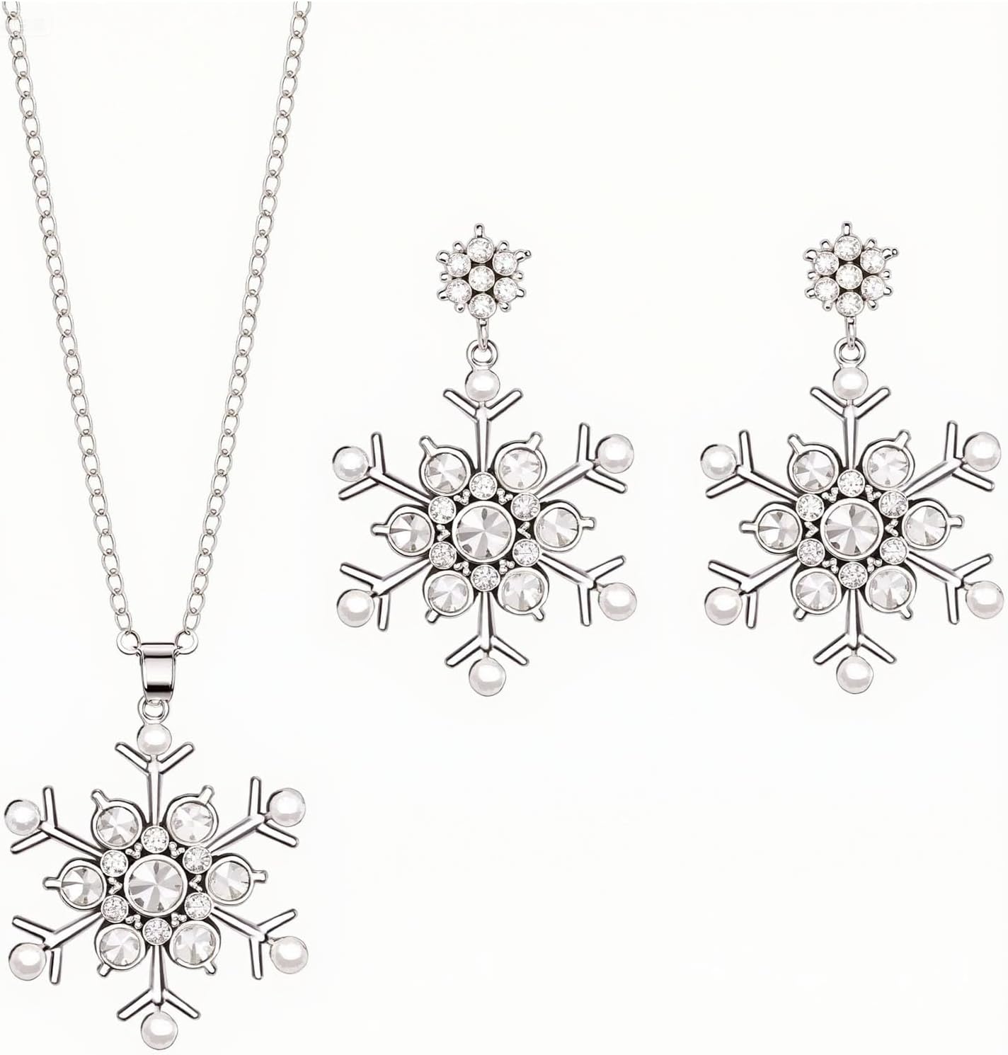Christmas Snowflake Necklace Earrings Set Rhinestone Pearl Snowflake Jewelry Set Sparkling Snowflakes Pendent Necklace Snowflakes Stud Earrings Christmas Decorations Christmas Jewelry Gift for Women