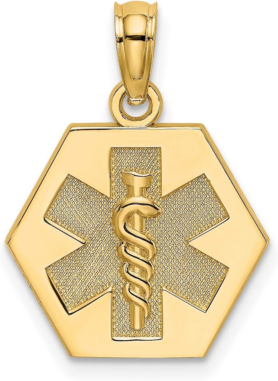 14k Yellow Gold Medical Alert Pendant with Star of Life and Caduceus Symbol, Emergency ID Necklace for Men and Women, Real Gold Healthcare Jewelry for Nurses EMTs Doctors and Medical Conditions