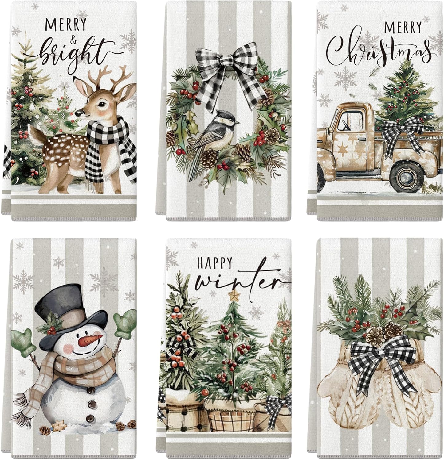 - What You Get: You will receive a set of 6 Christmas kitchen dish towels, featuring different styles to cater to your daily needs for cleaning kitchen dishes and adding charm to your home. These towels serve both functional and decorative purposes, and you can also share them with your family and friends
