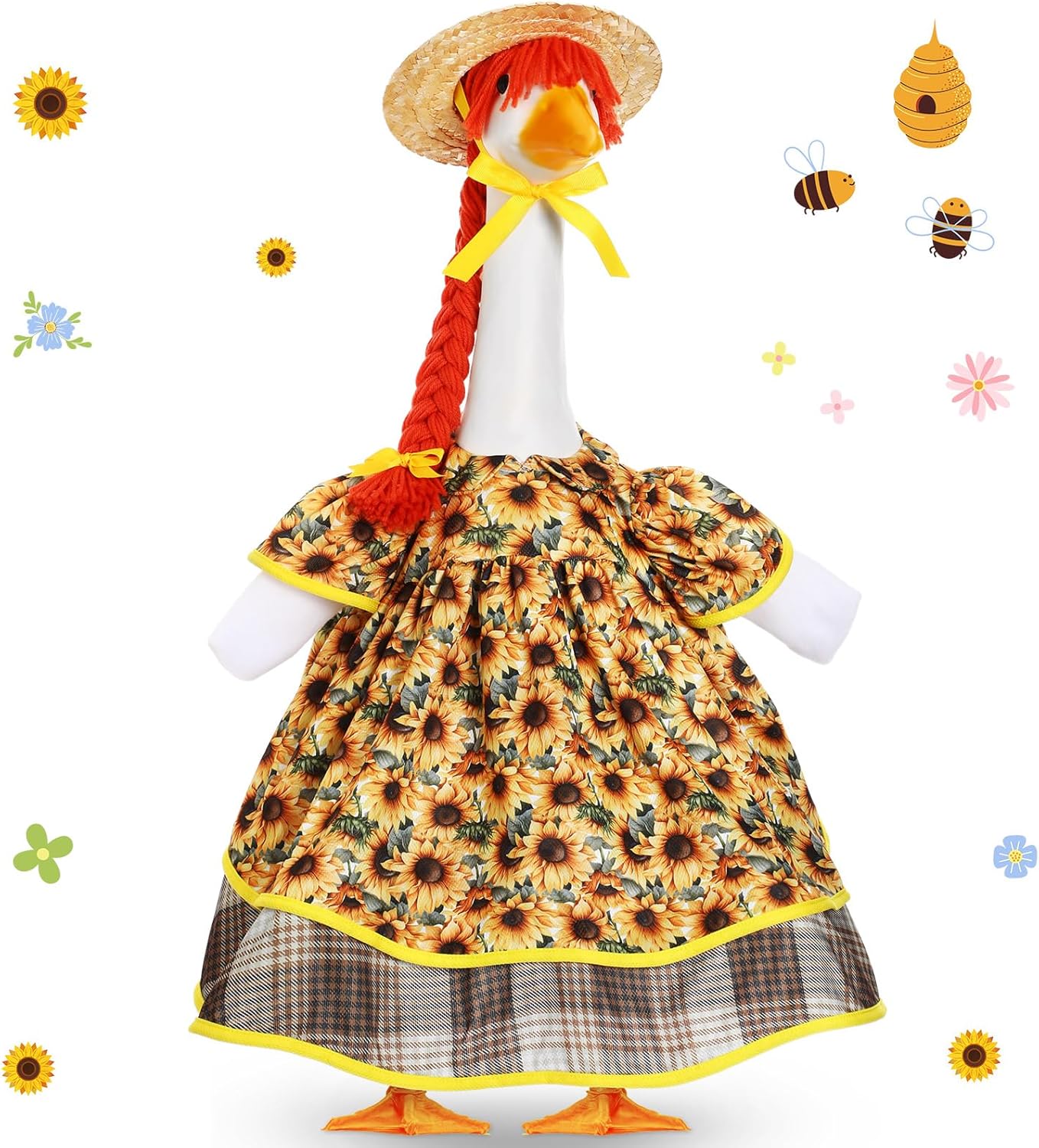 - Sunflower Goose Outfit: you get 1 set of summer sunflower themed goose costume, including 1 sunflower lolita skirt, 1 summer hat with wig, which can dress up the 23 inch porch goose statue, making your home full of summer atmosphere