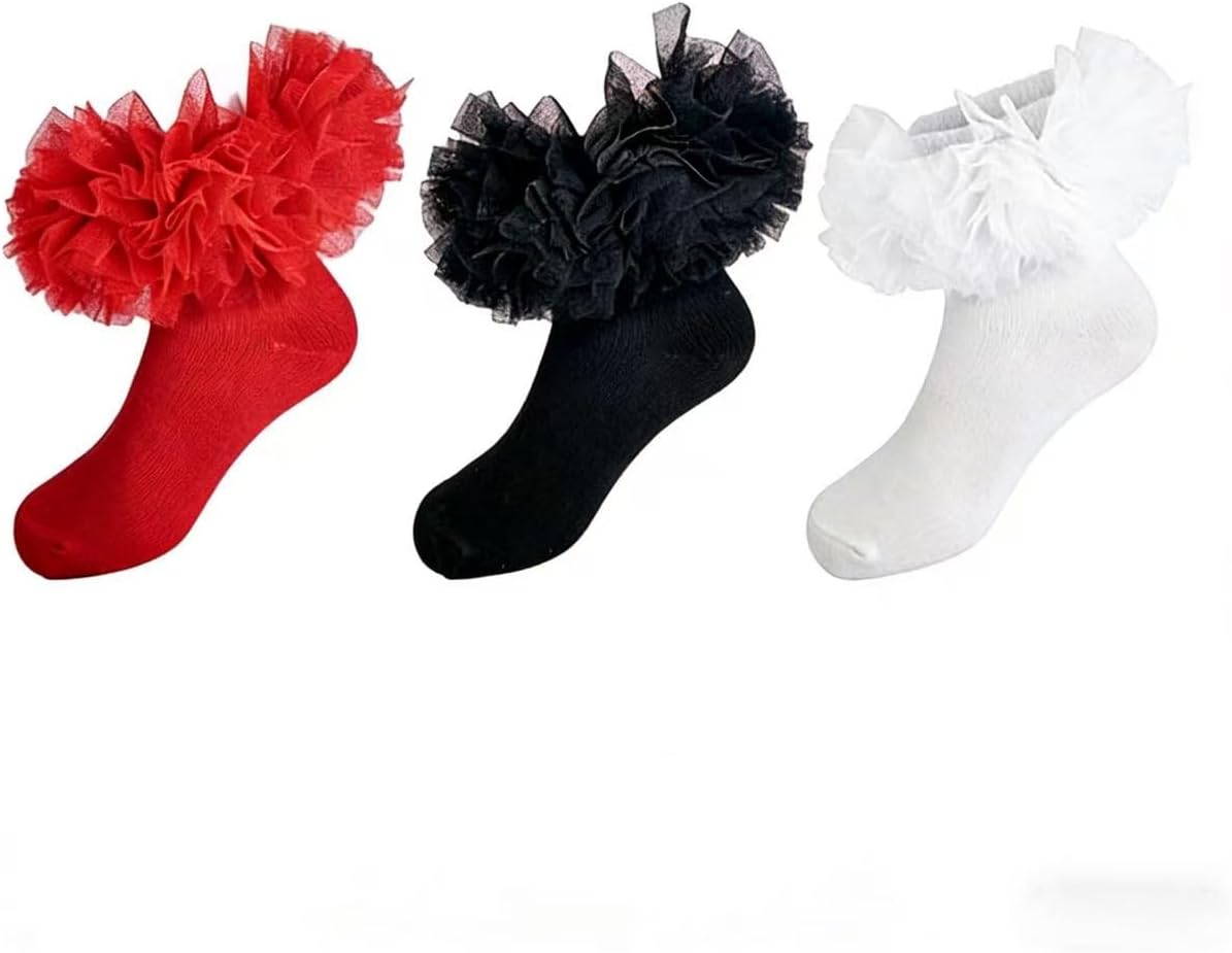 Baby Girl Socks Turn Cuff Double Lace Big Ruffle Socks for Toddlers