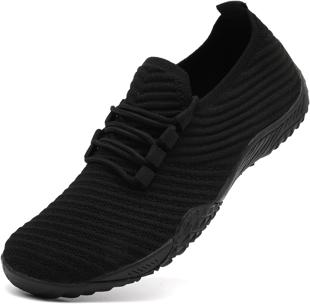 Womens Barefoot Shoes Minimalist Walking Trainers Zero Drop Sole Slip On Yoga Casual Sneakers Lightweight Breathable Indoor House Shoes All_Black Size US 8