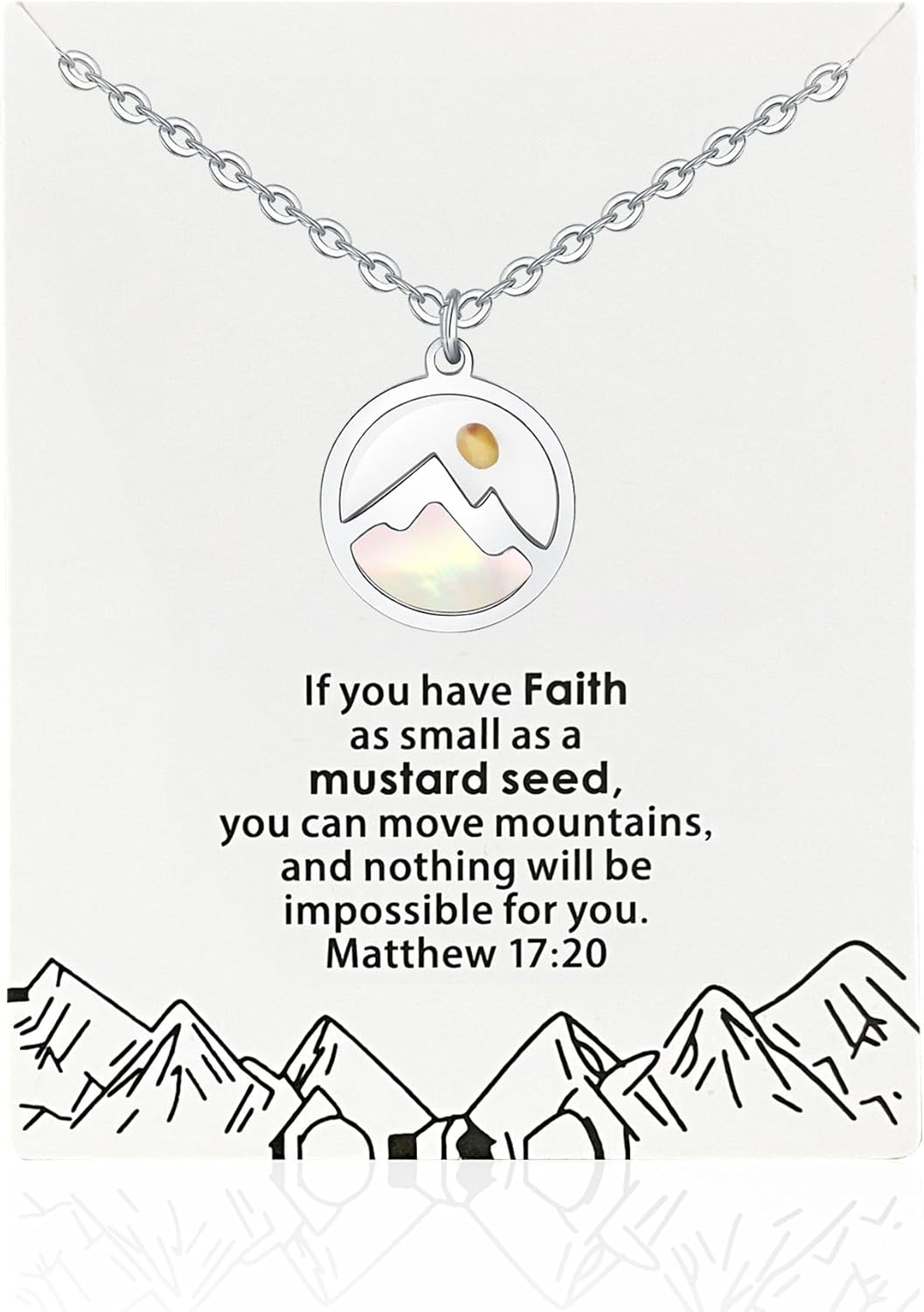 Mustard Seed Necklace - Faith for Women, Jewelry Christian Inspirational Gifts of Snowy Mountain Necklace, Dainty with Gift Card