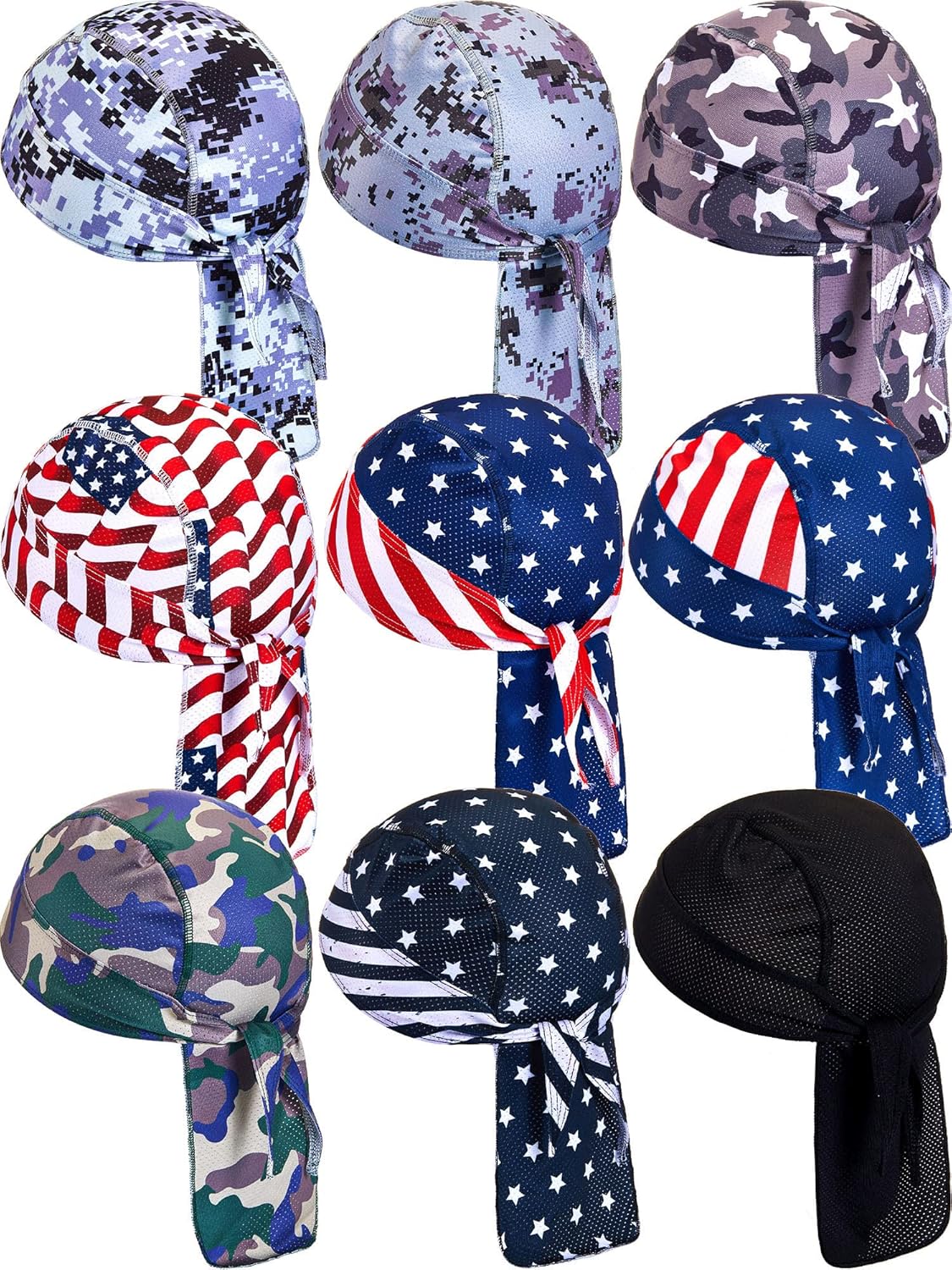 9 Pieces Doo Rag Skull Cap for Men Women, Sweat Wicking Doo Rag Cooling Dew Rag Sweat Wicking Beanie Cap Skull Cap Pirate Hats
