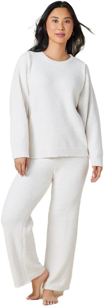 Softies Marshmallow Reverse Seam Crew Neck Lounge Set for Women Ultra Soft 2 Piece Loungewear with Bracelet Sleeve Top