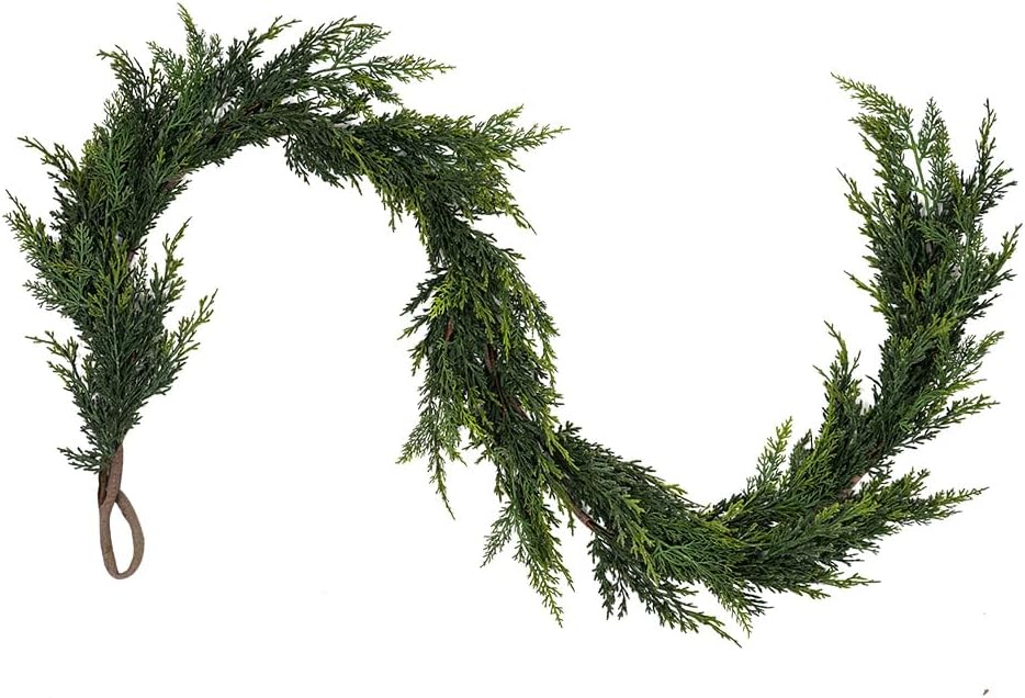 Christmas Cedar Garland,1Pcs 6ft Real Touch Cedar Pine Garland for Mantle Fireplace Outdoor Indoor Christmas Decorations