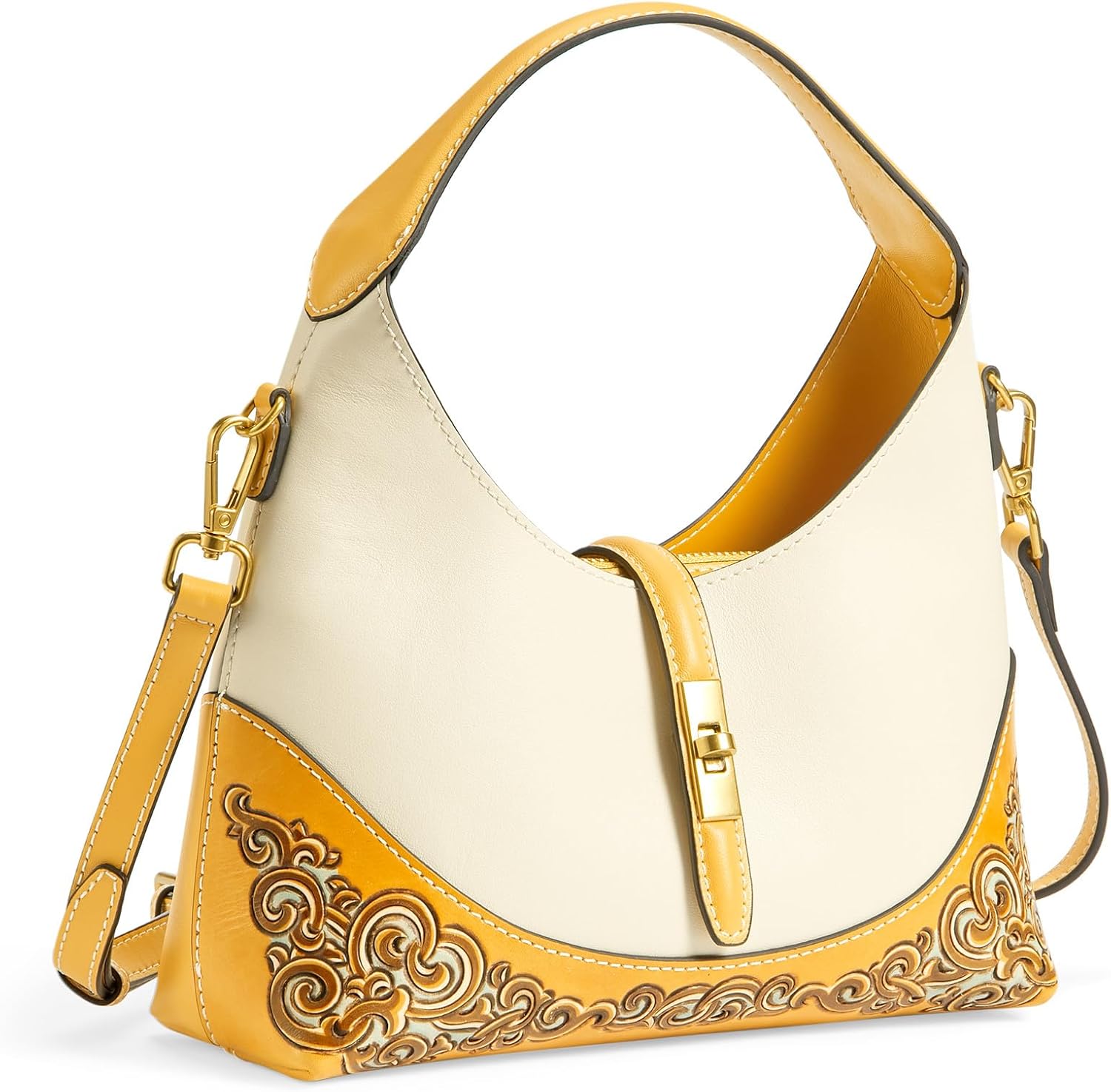 Leather Shoulder Bag for Women & Adjustable Crossbody with Hand-Carved Auspicious motifs with Zipper Closure Tote Handbag Under the Arm Purses