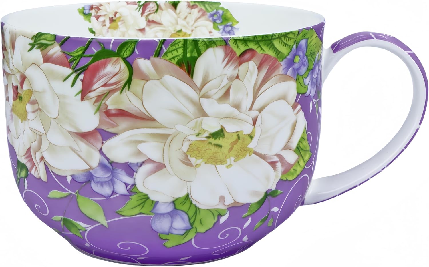 25oz Large Coffee Cups Soup Mugs with Handles Traditional Large Coffee Cup Large Bone China Coffee Mugs Cups for Coffee Cereal Latte Soups (Romantic Purple)