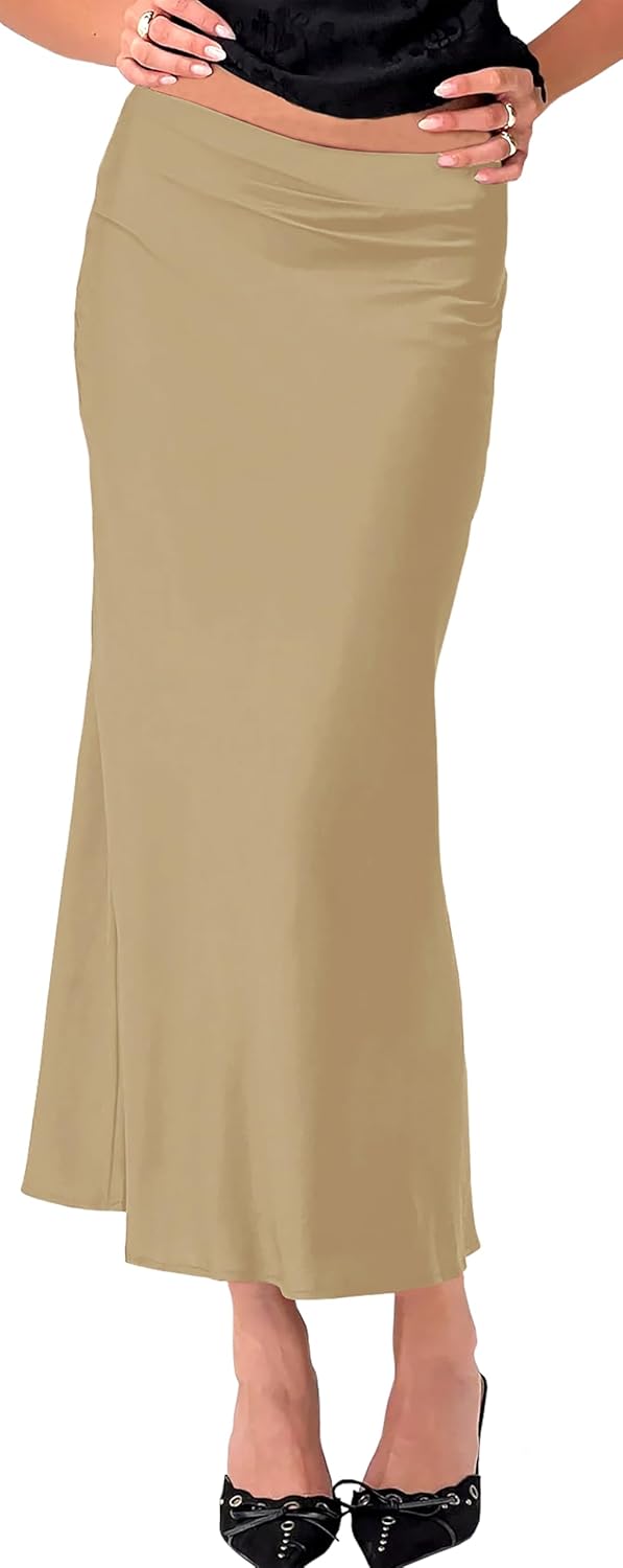 Womens Satin Skirt High Waist Stretchy Elastic Waistband Flowy Elegant Midi Skirts for Work & Casual