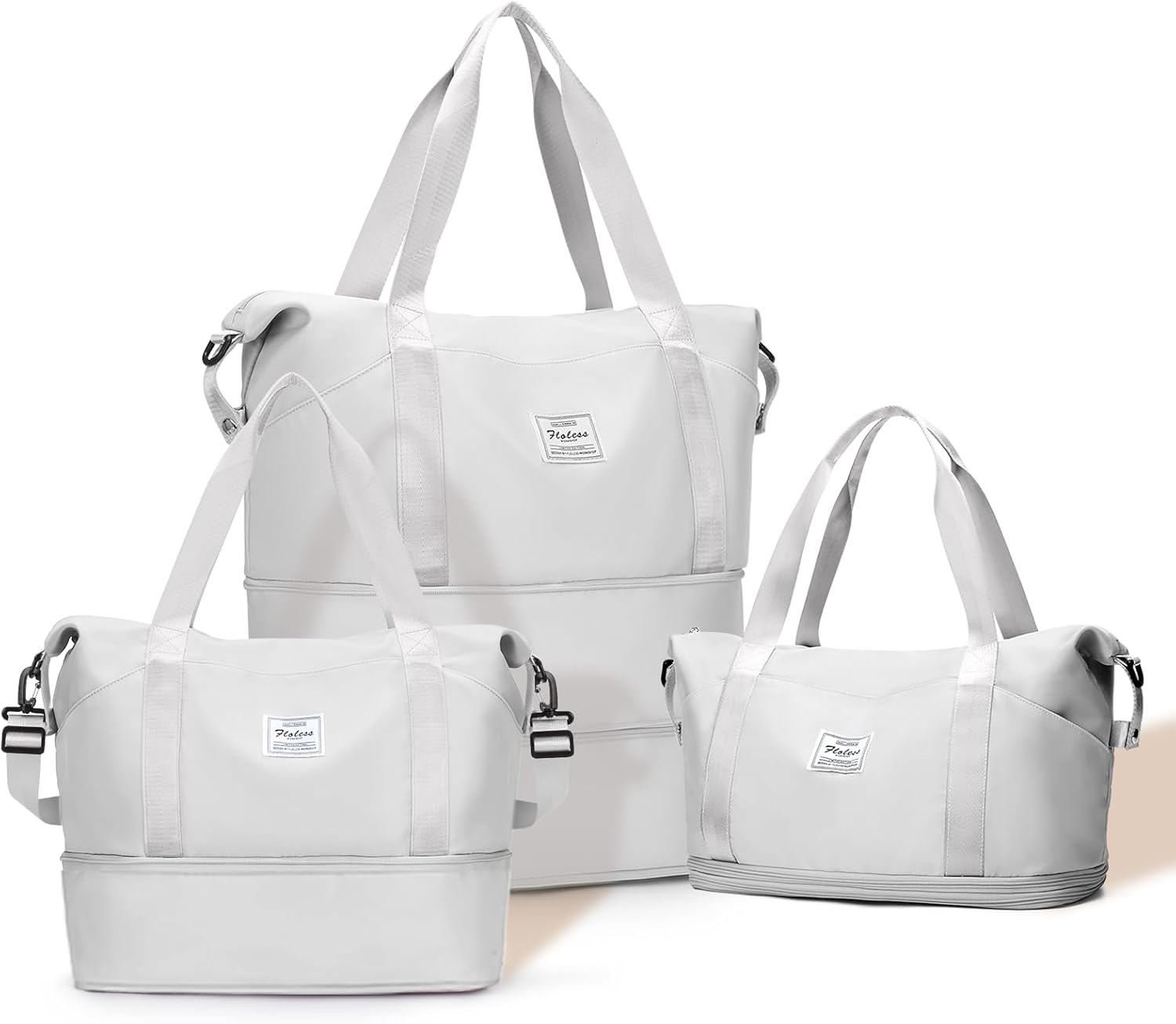 Expandable Travel Duffle Bag for Women Men, Large Gym Bag Travel Tote Bags, Waterproof Carry On Personal Item Bag Airline Approved, Overnight Workout Weekender Bag with Luggage Sleeve, Light Grey