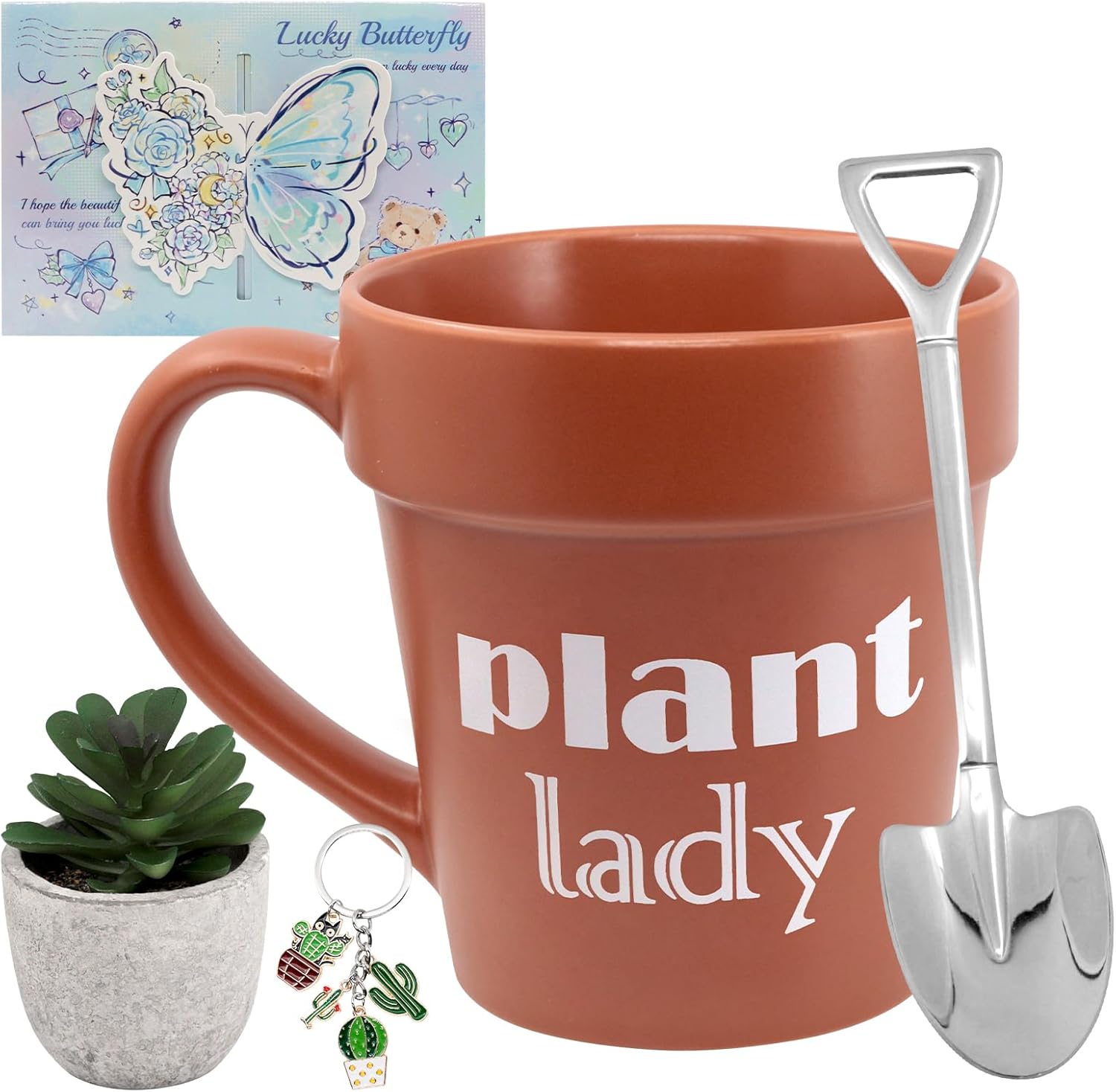 - 🌸 Perfect Plant Lady Gift Set: A complete gardener coffee mug gifts set designed for women, wife, mom, her, teacher and friend! Features a charming "Plant Lady" flowerpot mug + functional shovel spoon – ideal for Valentines, Mothers Day, Christmas or birthdays.