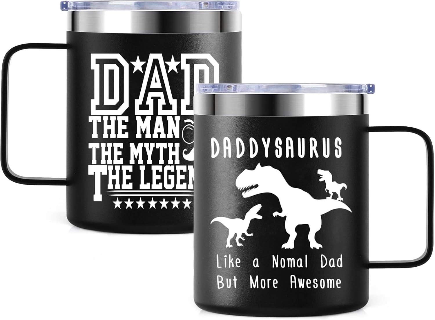 Dad Gifts from Daughter Son, DADDYSAURUS 12oz Stainless Steel Insulated Mug Tumbler with Lid for Dad, Men's Gifts for Ideas for Father's Day Christmas