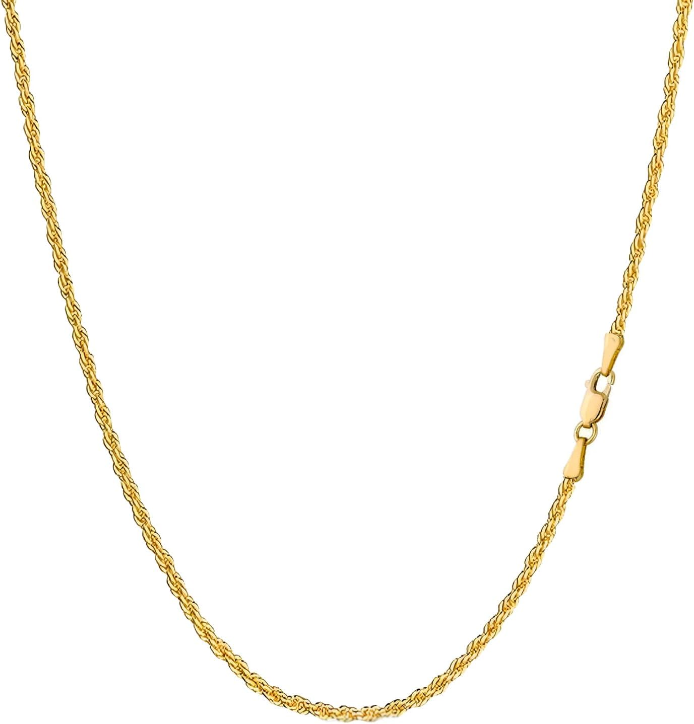 14K Yellow Gold Rope Link Chain Dainty Yellow Gold Necklace for Women and Men with Lobster Clasp