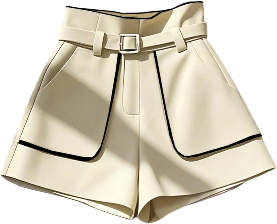 Floerns Women's Elegant Mid Waist Straight Leg Dressy Casual Shorts with Belt