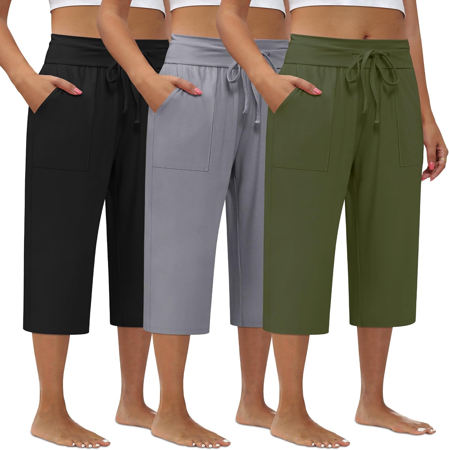 3 Pack Women's Plus Size Capri Pants, Drawstring Capris Sweatpants Casual Summer Cropped Pants with Pockets