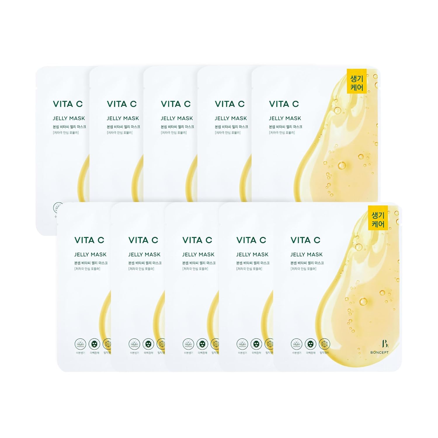 Vita C Jelly Mask - Vitamin C & Retinol, Dark Spots Wrinkles Elasticity Moisturizing Biodegradable Korean Sheet Mask, 10 sheet