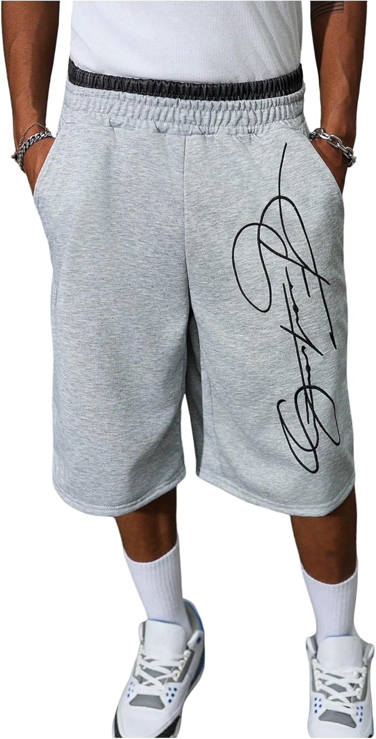 Milumia Men's Letter Graphic Bermuda Shorts Elastic Waist Casual Workout Sweat Shorts with Pockets
