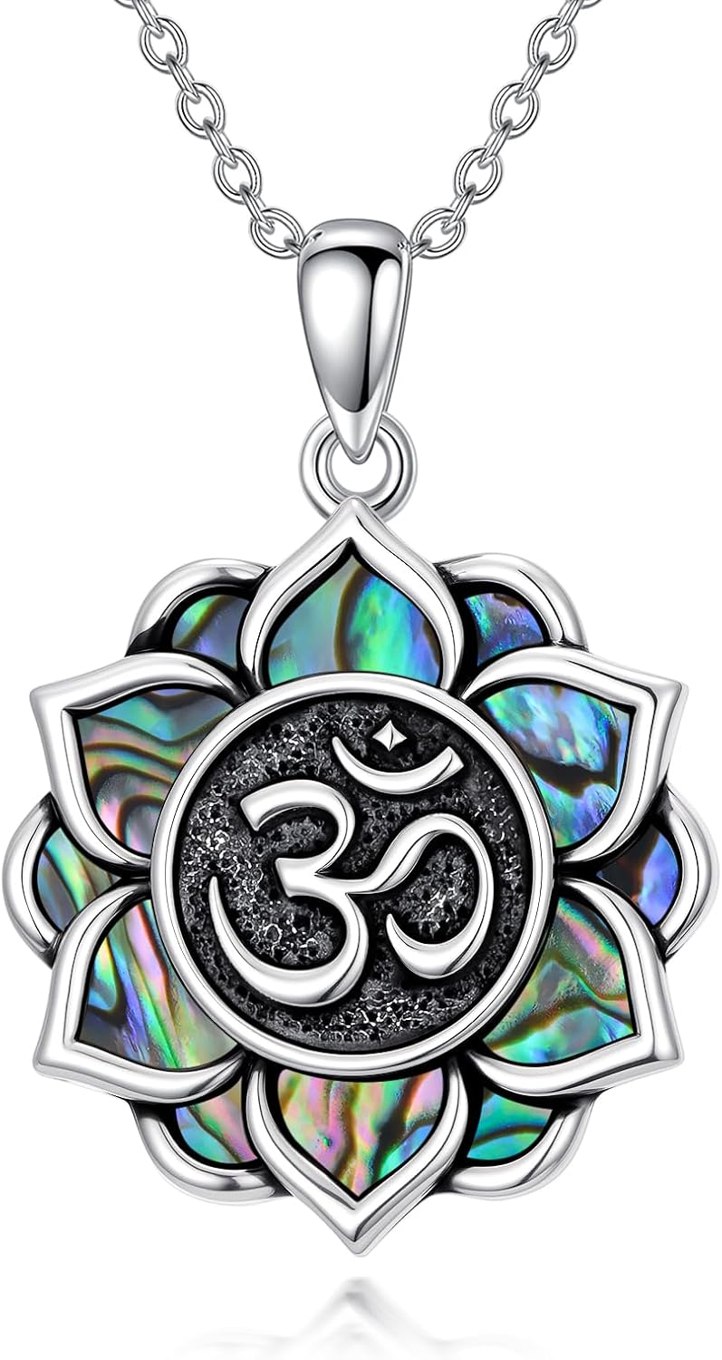 Om Necklace 925 Sterling Silver Lotus Om pendant Abalone Lotus Ohm Symbol Jewelry for Women