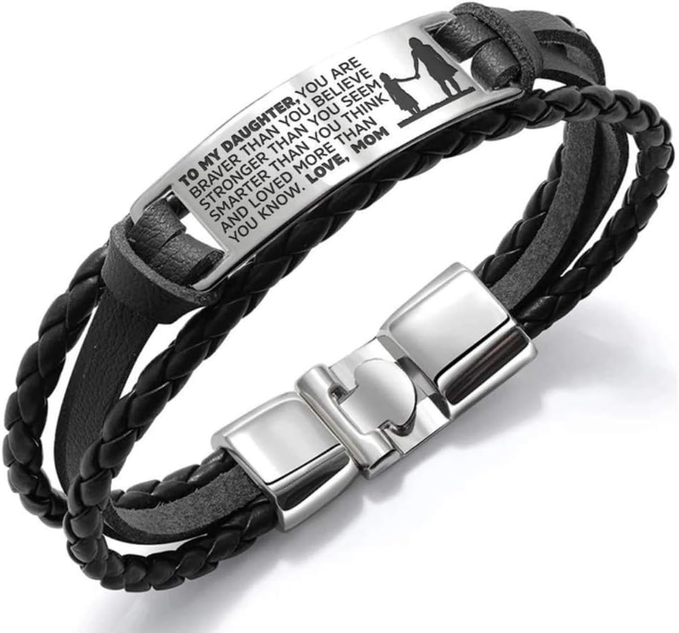 To My Daughter Bracelets, Stainless Steel Wristband, Daughter Bracelet From Mom, Daughter Gift (Black)