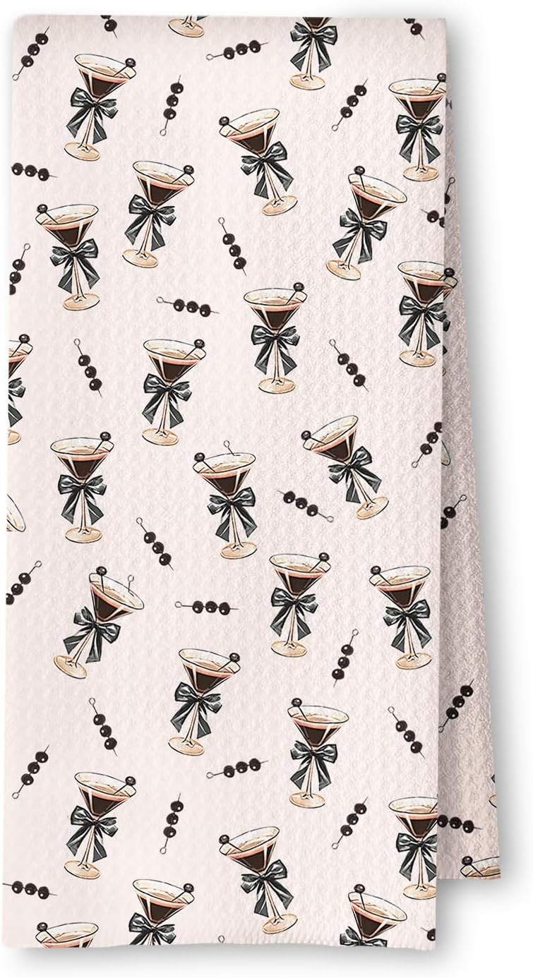 Pink Trendy Espresso Martini Kitchen Towels, Gifts for Martini Lovers Dish Tea Bar Towels for Kitchen Bar Cart Decor, Cocktail Lover Gifts Decorative Hand Towels, 16x24 Inches