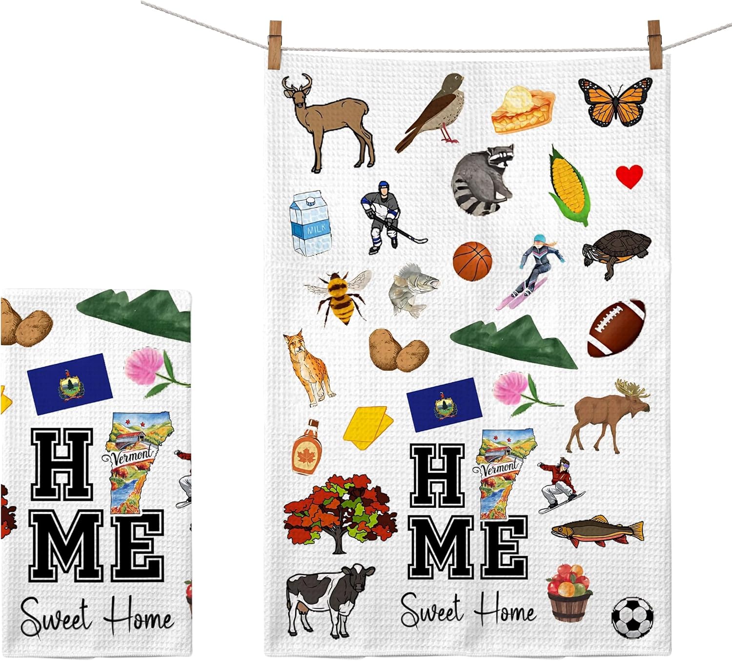 Home Sweet Home Vermont Kitchen Towel - Housewarming and Homecoming Gifts - Vermont State Favorite Symbol Dish Towels Gifts for Women Friends for Birthdays Mother's Day and Holidays