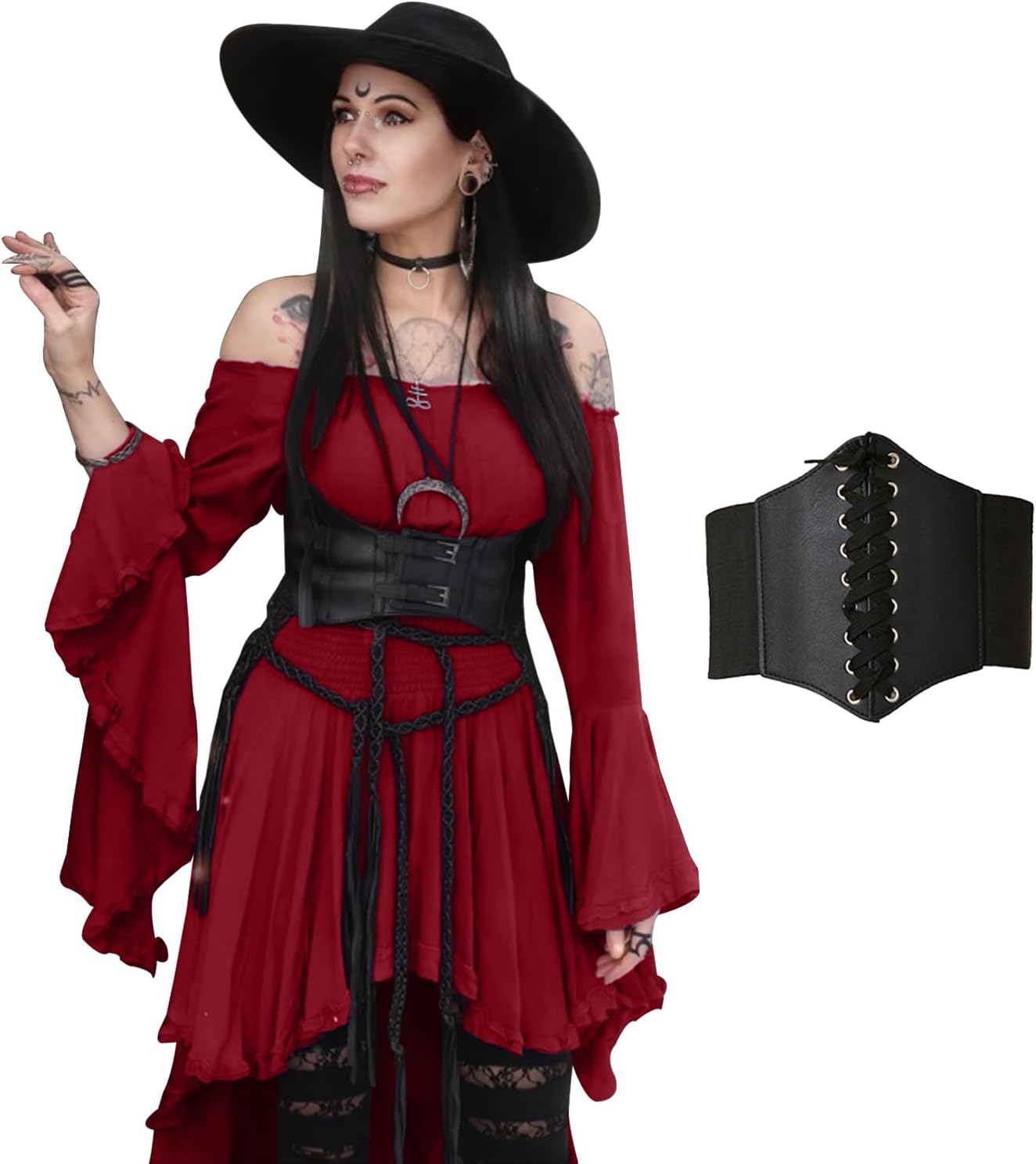 BITSEACOCO Women's Off Shoulder Gothic Witch High Low Dress Victorian Medieval Fairy Dresses Cosplay Halloween Costumes