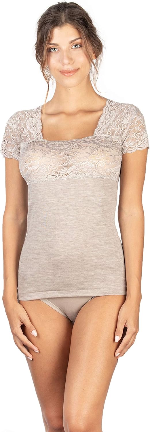 Mare ® Luxury Merino Wool Blend Women's Top with Lace. Proudly Made in Italy.