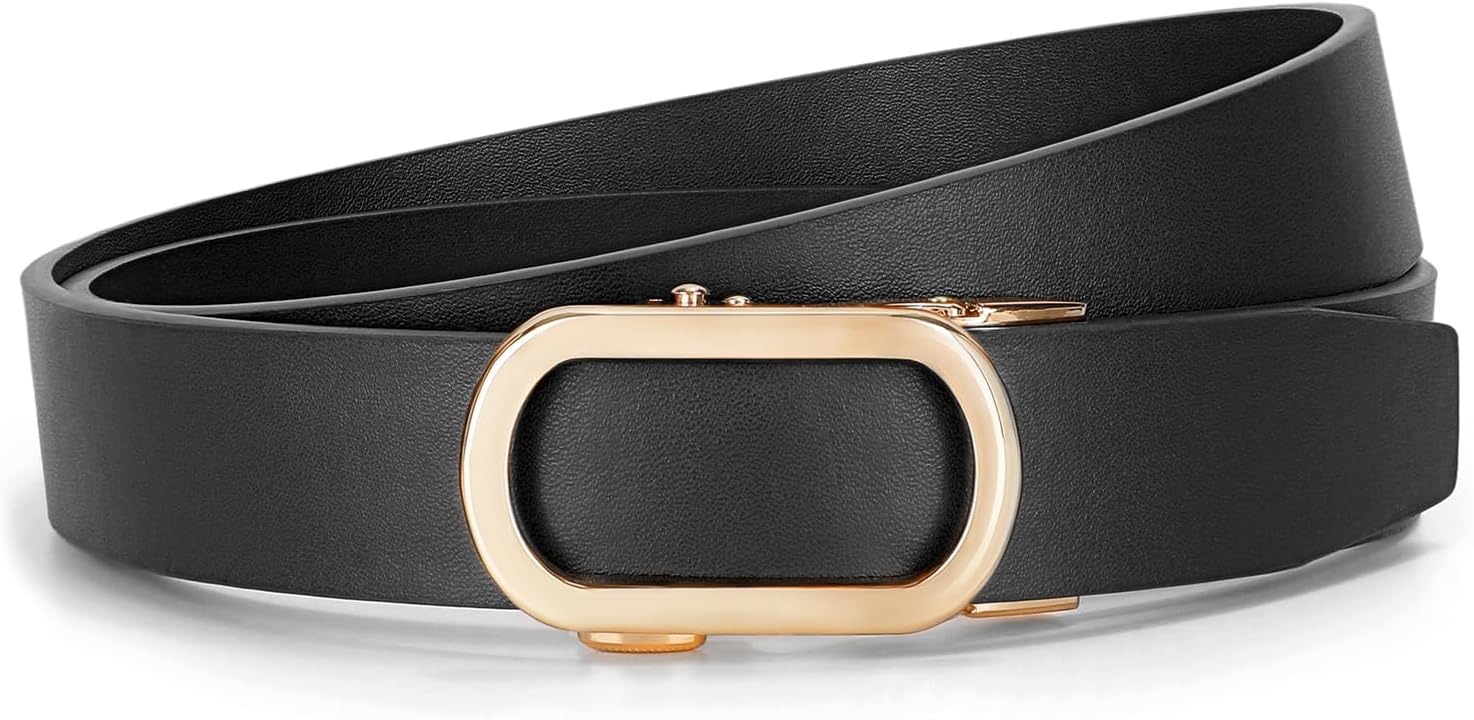 JASGOOD Women Leather Ratchet Belt for Jeans Pants Dresses Adjustable Belt with Automatic Sliding Buckle, Width 1.2"