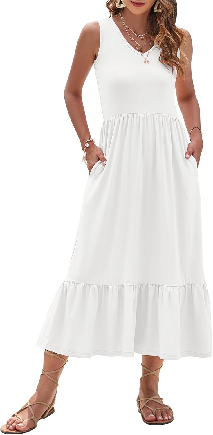 AUSELILY Womens Maxi Dress 2026 Sleeveless Summer Dresses V Neck Casual Tiered Sundresses with Pockets