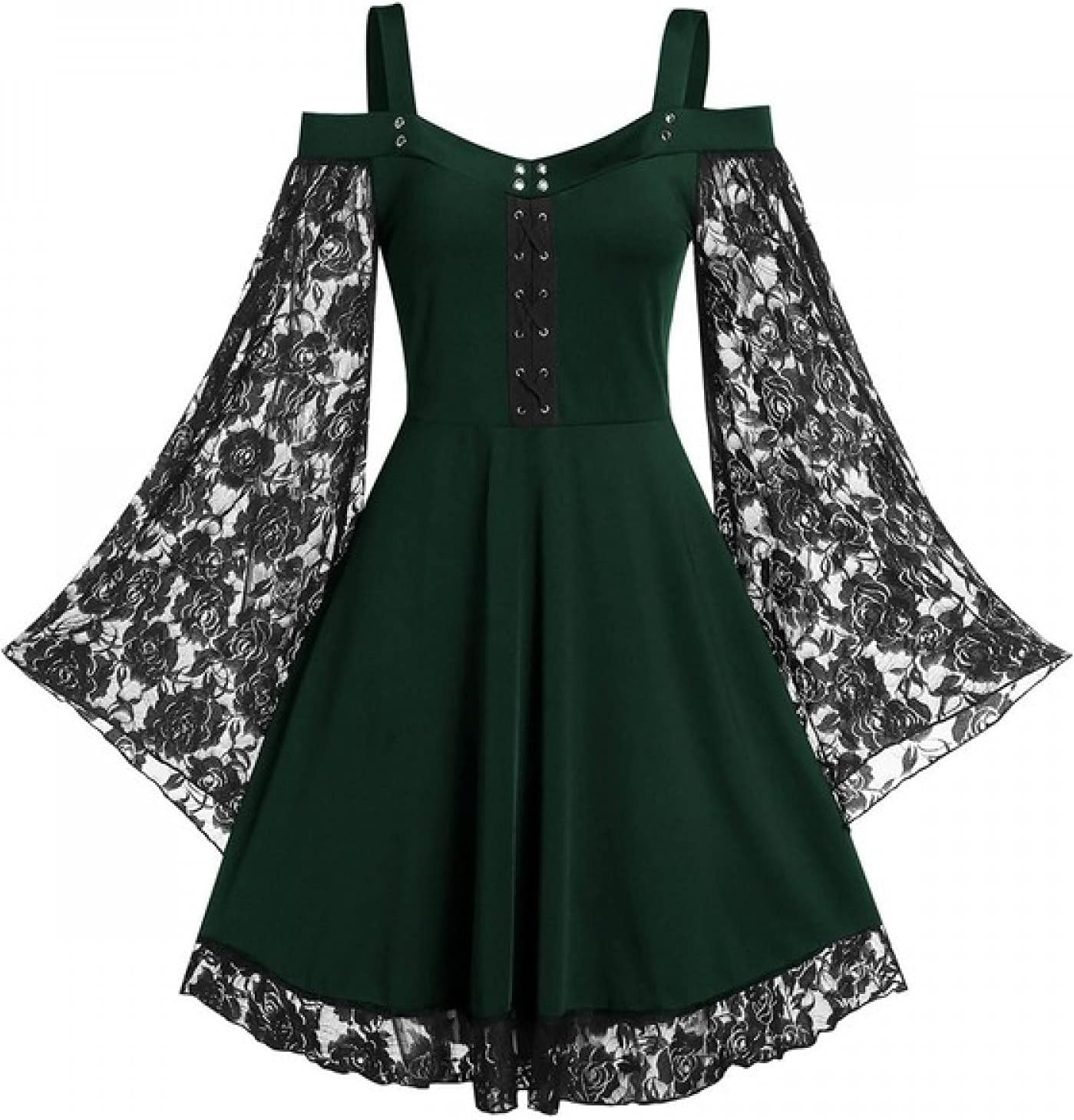 Gothic Vintage Lace Patchwork Women Dress Plus Size Goth Bandage Ladies Spaghetti Strap Dresses
