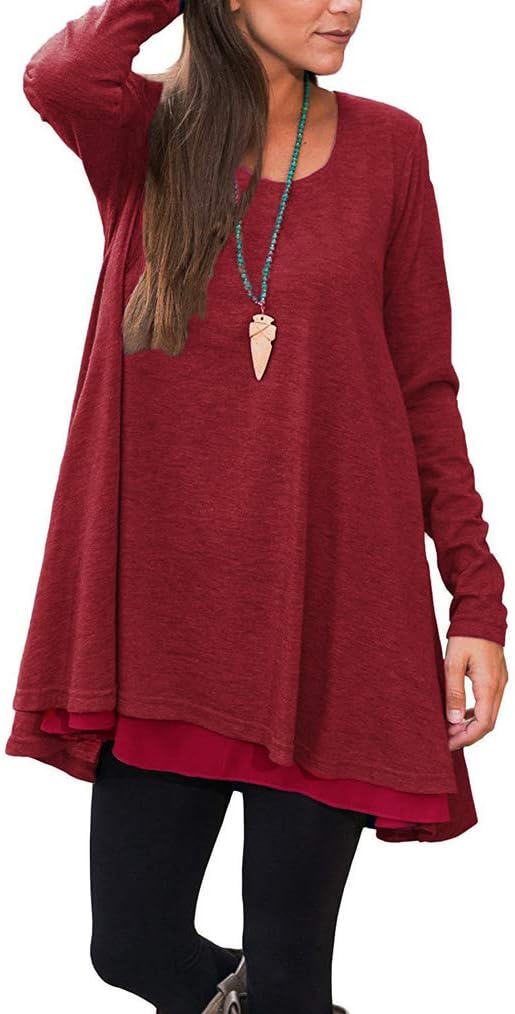 Poetsky Women's Long Sleeve Solid Color Tunic Tops Layered Casual Loose Blouse Shirts