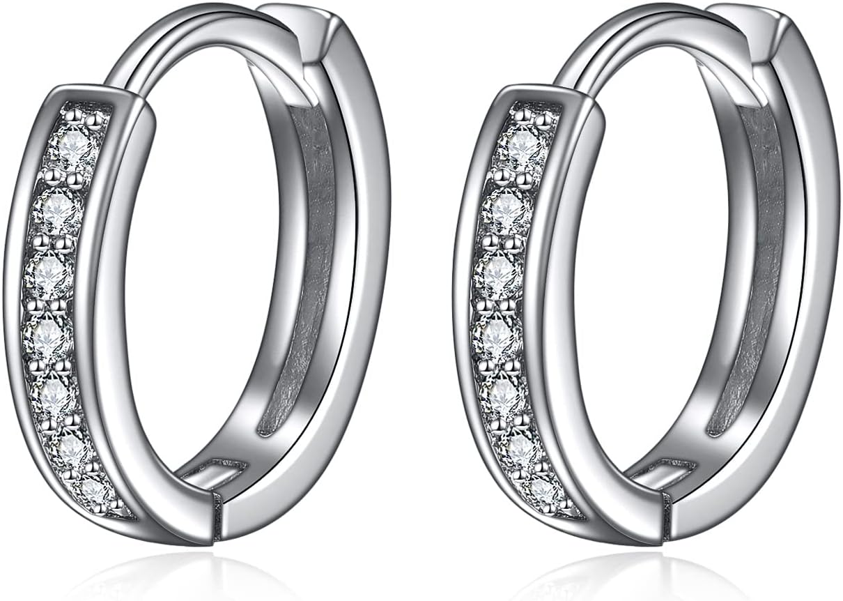 YAFEINI Cubic Zirconia Hoop Earrings Sterling Silver Channel Earrings Cz Hoop Earrings Huggie Hoop Jewelry Gifts for Women