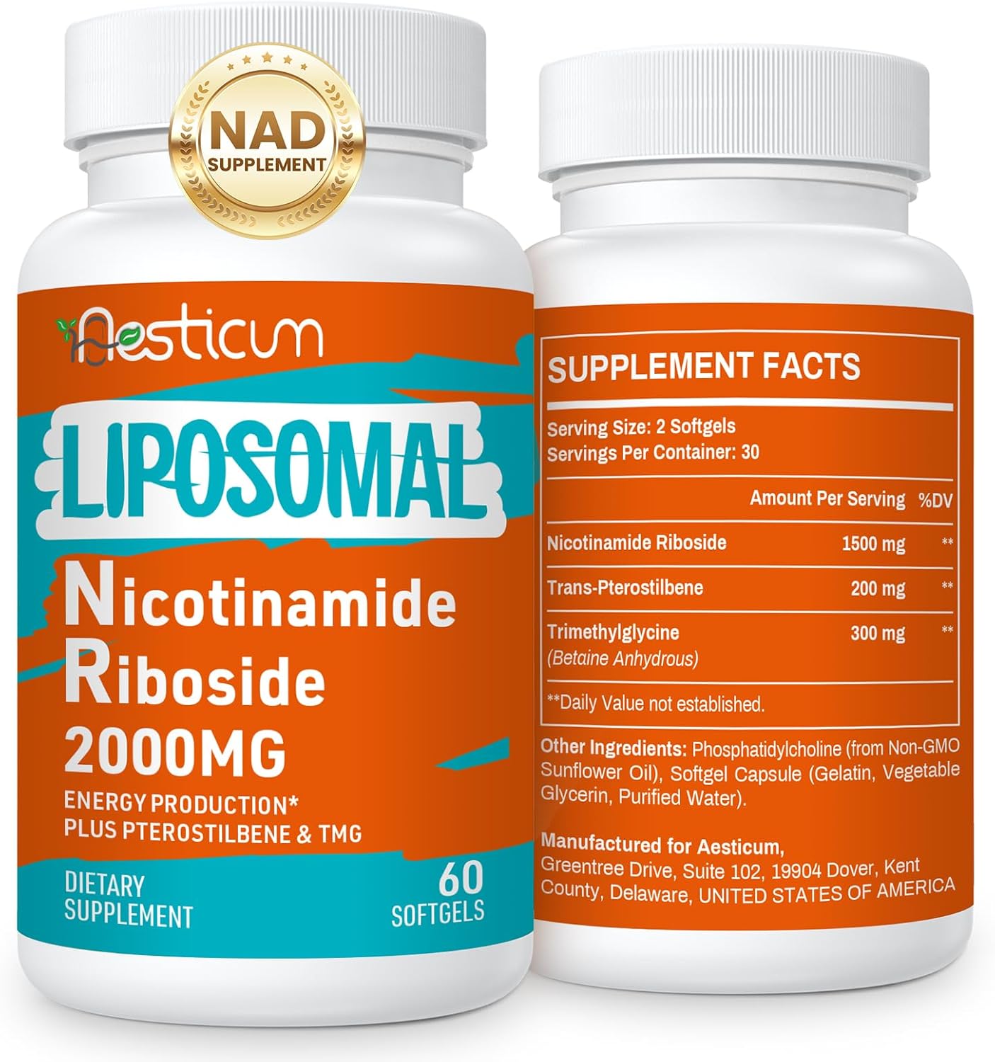 2000 MG Nicotinamide Riboside, NMNH Supplement Alternative, Liposomal Nicotinamide Riboside Supplement with TMG & Pterostilbene - NAD*, Energy, Focus, Immunity, Age Resist - 120 Softgels