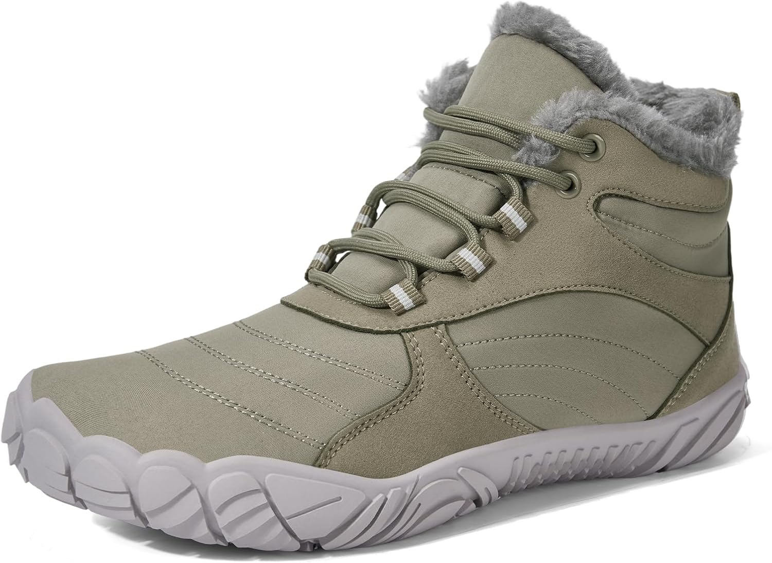 HiGropcore Barefoot Boots Women Men Fur Lined Winter Barefoot Shoes Water-Repellent Hiking Snow Boots Minimalist Wide Toe Box Ankle Booties