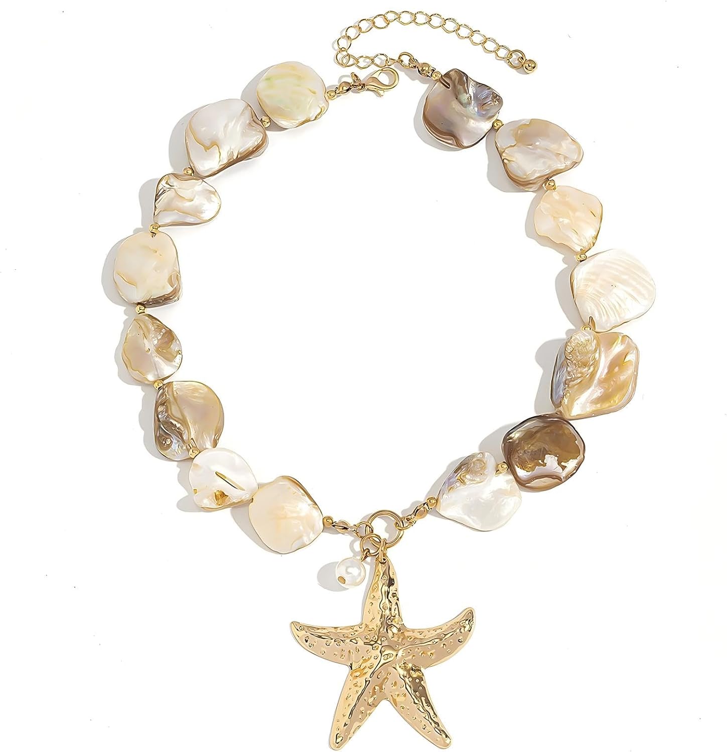 Seashell Starfish Pendent Necklace Cowrie Pearl Mermaid Irregular Chunky Necklace Summer Beach Jewelry for Women