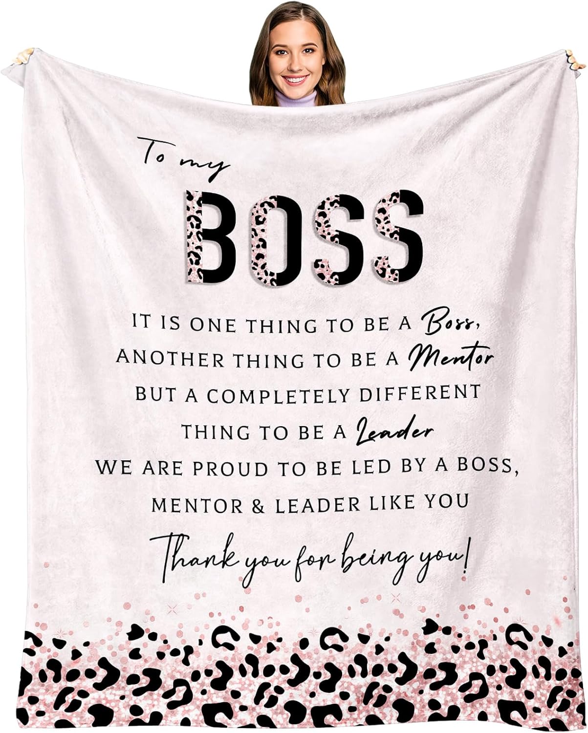 - Exquisite Design: this boss gift for women not only highlights the dignity and atmosphere but also contains the deep gratitude and high respect of the giver, whether it is a gift for a boss female or a gift for a male boss, which can perfectly express our feelings. Those carefully woven words on the blanket are not only a reflection of creativity, but also a transmission of our sincere feelings