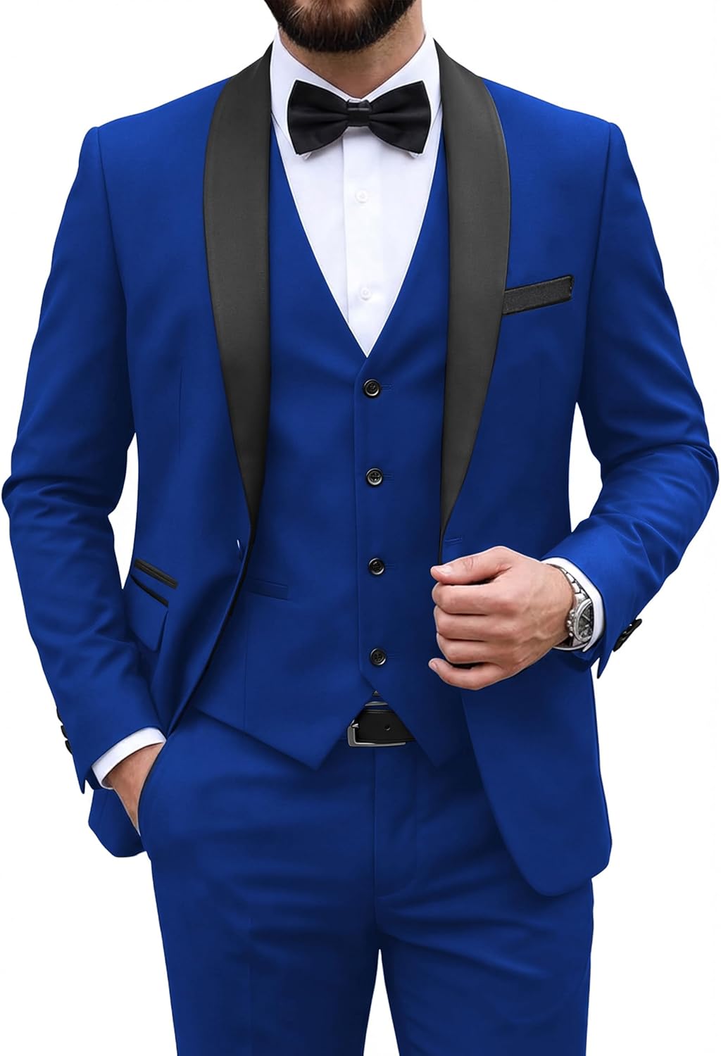 MY'S Mens 3 Piece Suit Set, One Button Shawl Lapel Tuxedo, Slim Fit Dinner Jacket Vest Pants & Tie, for Party Wedding Proms