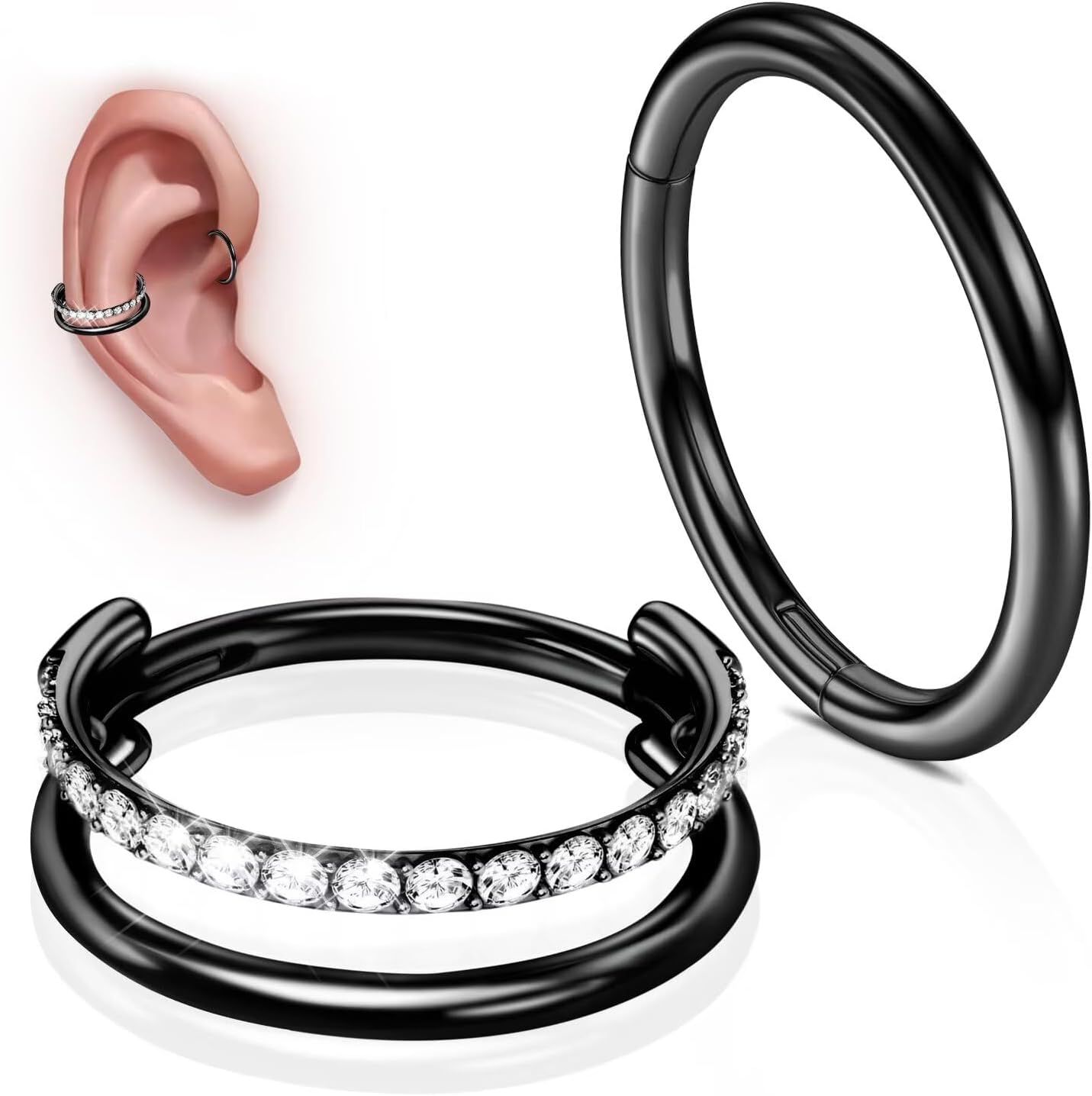 WBRWP G23 Titanium Conch Piercing Jewelry Set: 16G 8mm/10mm/12mm Double/Triple Hoop Nose Septum Rings Hypoallergenic Hinged Segment Clicker Helix Cartilage Conch Earrings