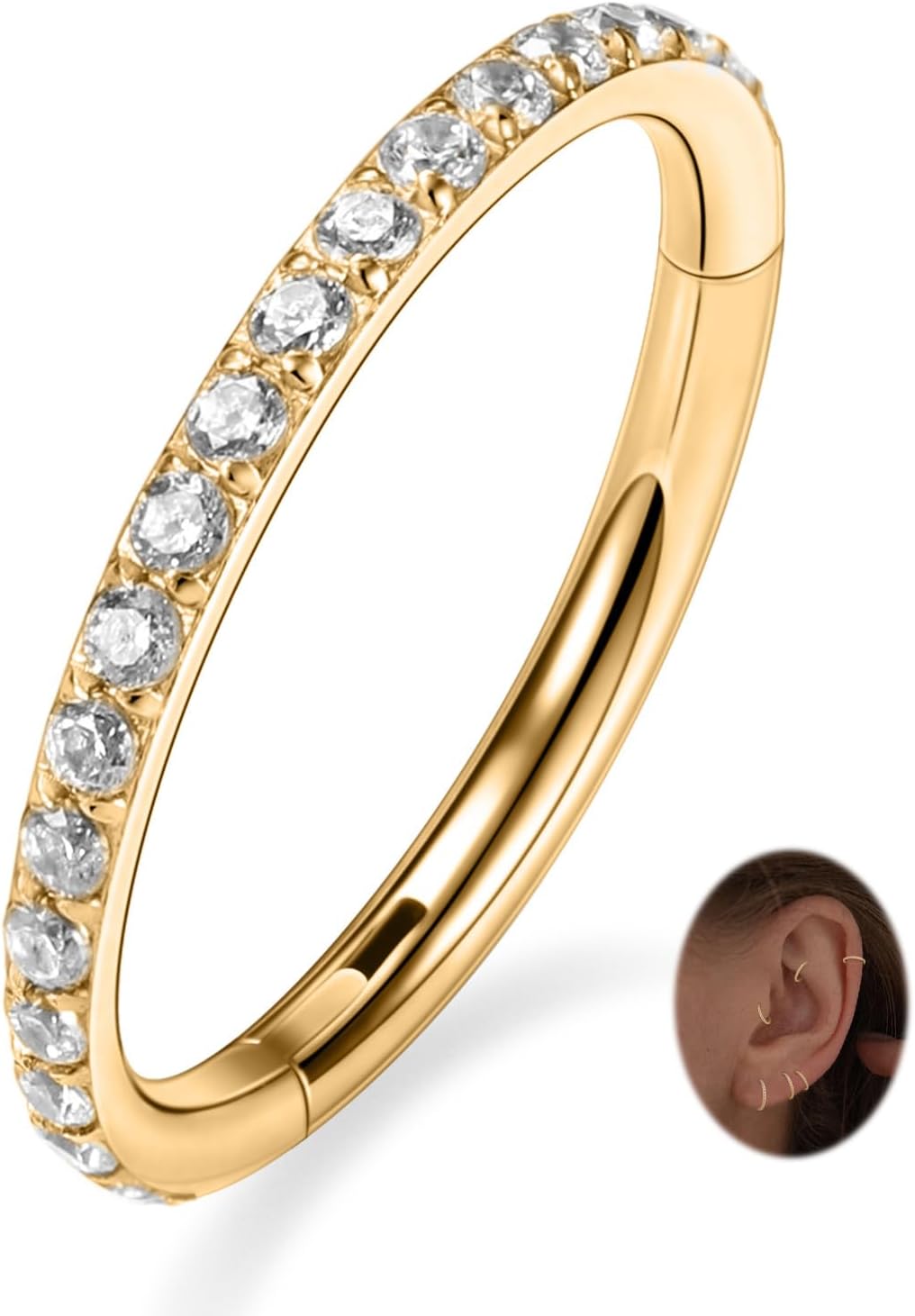 PEAKLINK Nose Ring 316L Surgical Steel Helix Cartilage Conch Earring with Gem Septum Clicker Daith Rook Tragus Lip Belly Ear Lobe Piercing Jewelry Nose Hoop, Diameter 5mm to 12mm