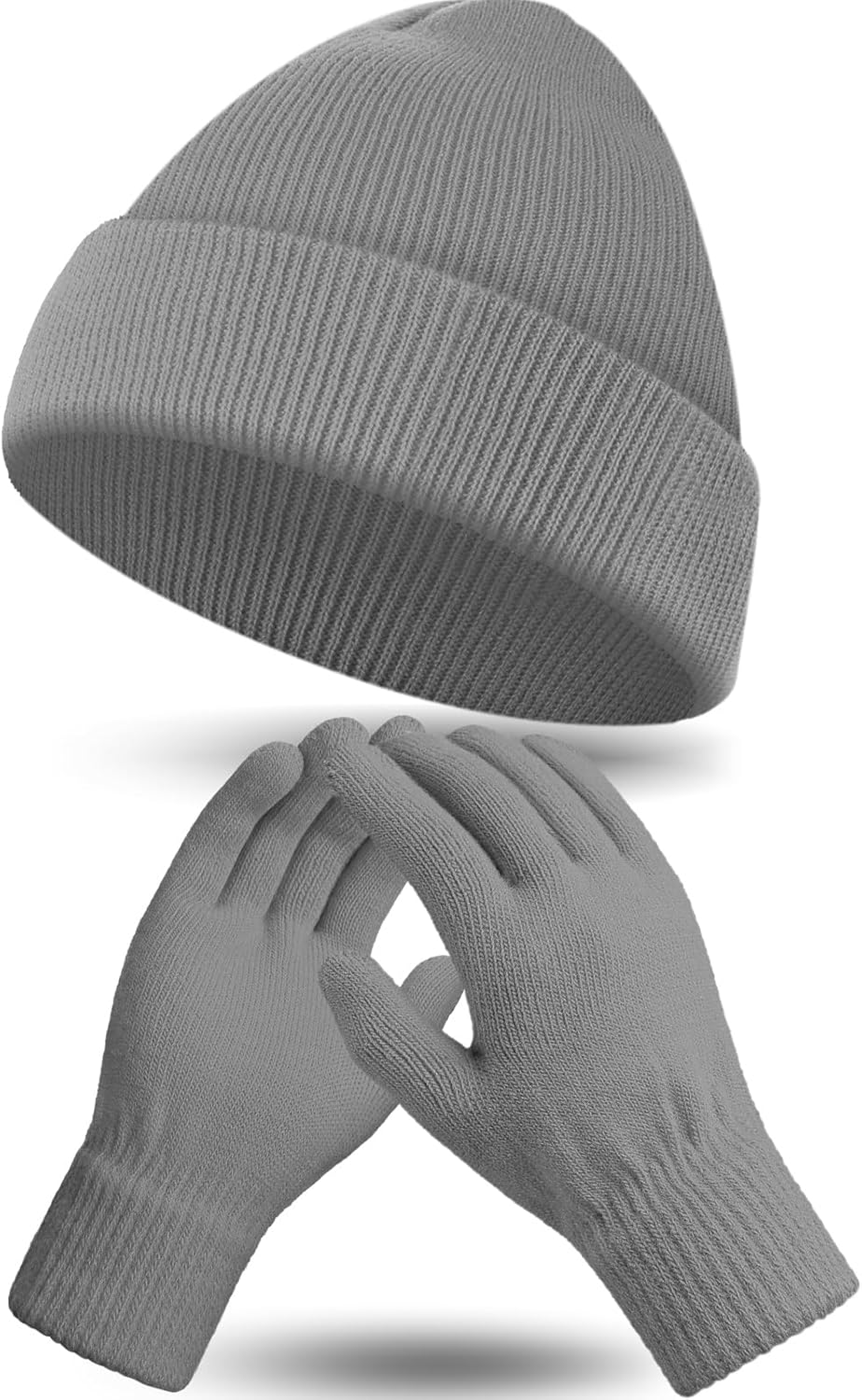 Winter Beanie Hat Gloves Set, Soft Knitted Hat Stretchy Gloves Warm Skull Cap Set for Women Men Gifts