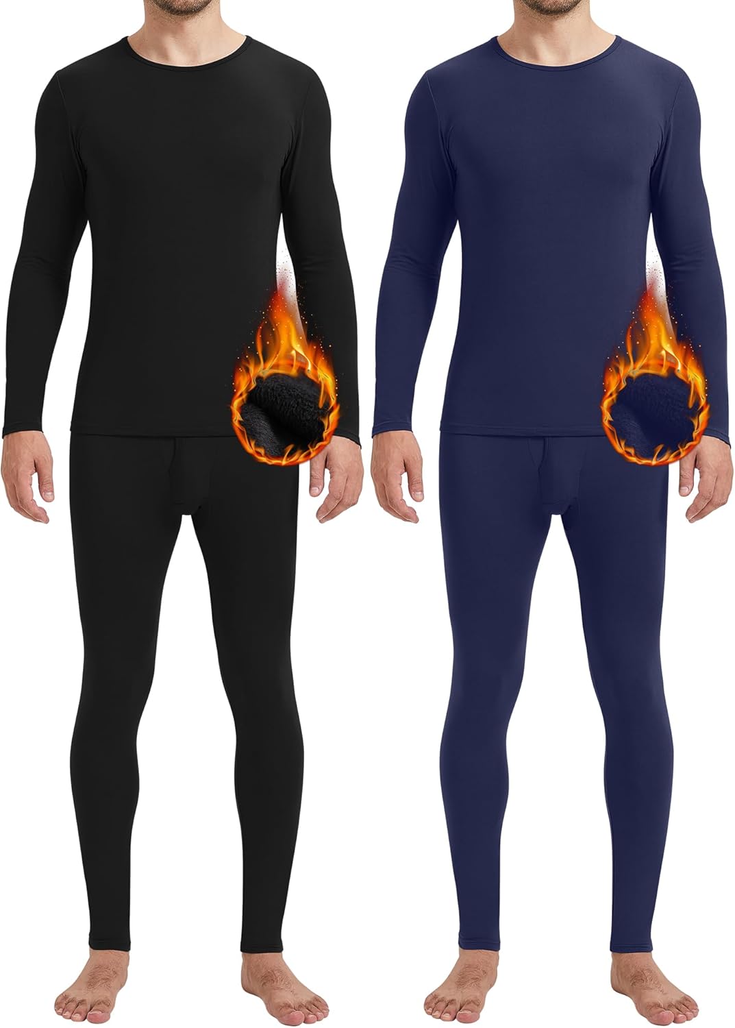 Patelai 2 Pack Men Thermals Top and Bottom Set Undergarments Lined Thermal Underwear Men Base Layer for Fall Winter