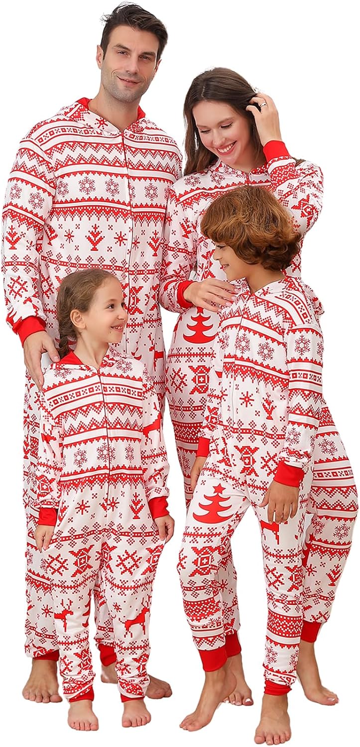 Family Matching Christmas Onesie Pajamas, Hooded One Piece Xmas Pajamas Onesie Adult Pajama Sleepwear