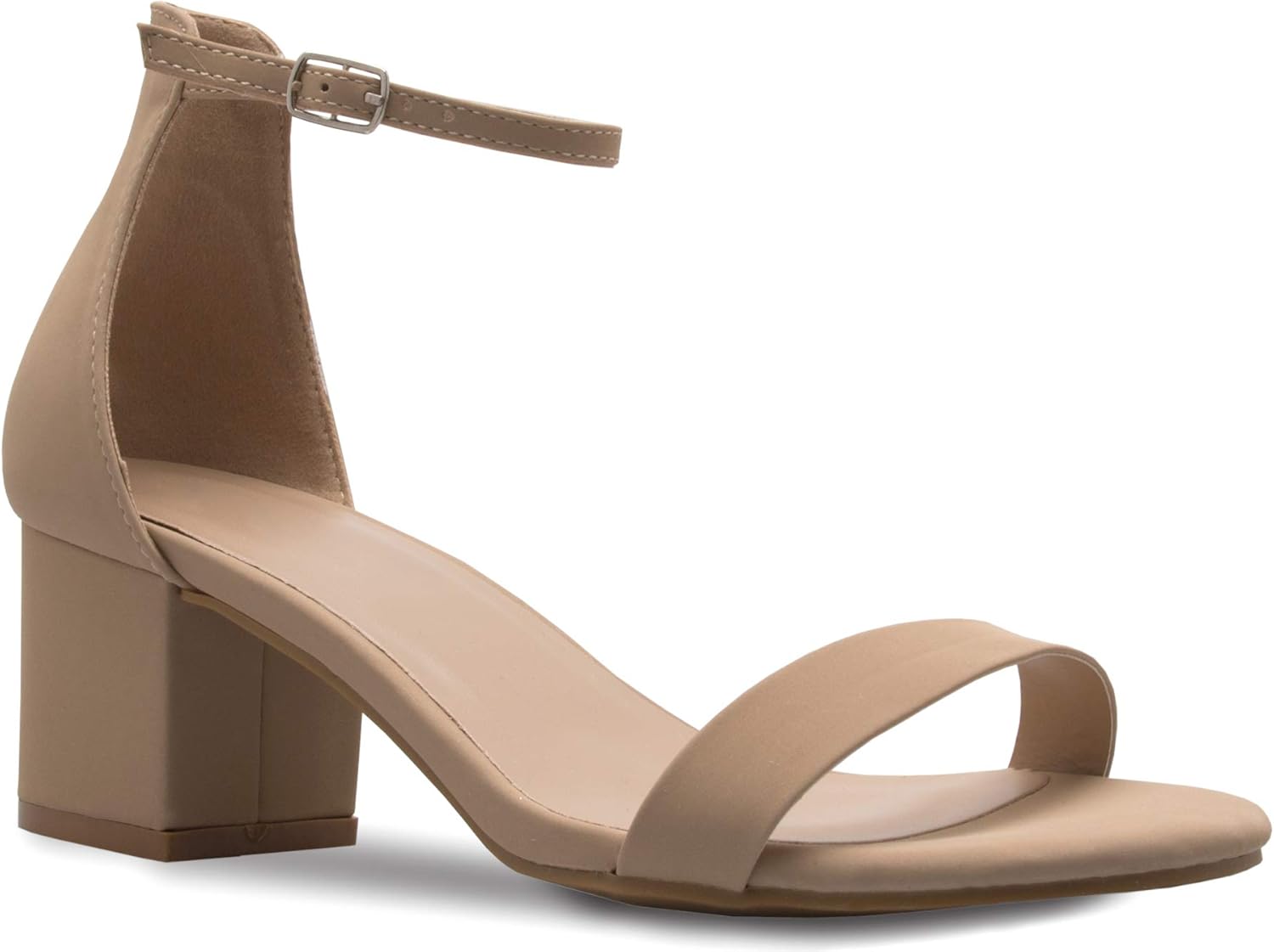 OLIVIA K Women's Ankle Strap Kitten Heel ? Adorable Low Block Metal Heel