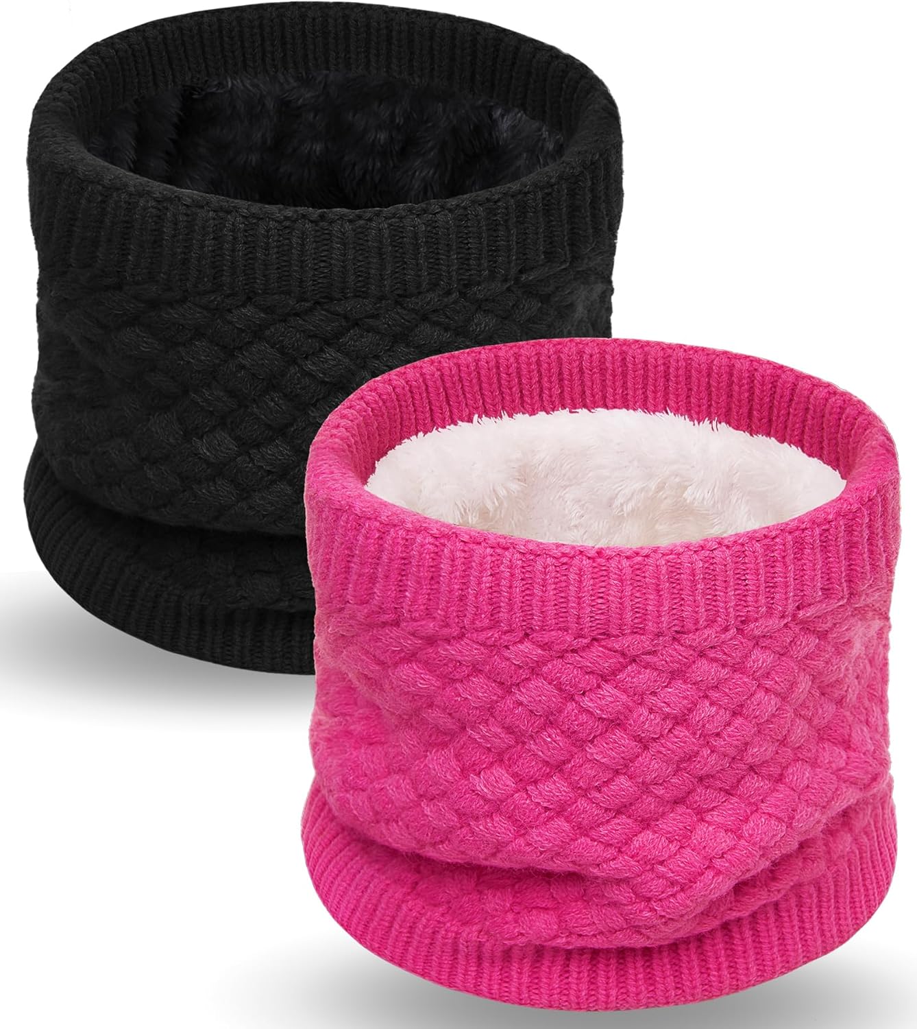 Kids Neck Warmer, Knitted Winter Neck Gaiter for Boys Girls Fleece Lined Infinity Scarf for Cold Weather